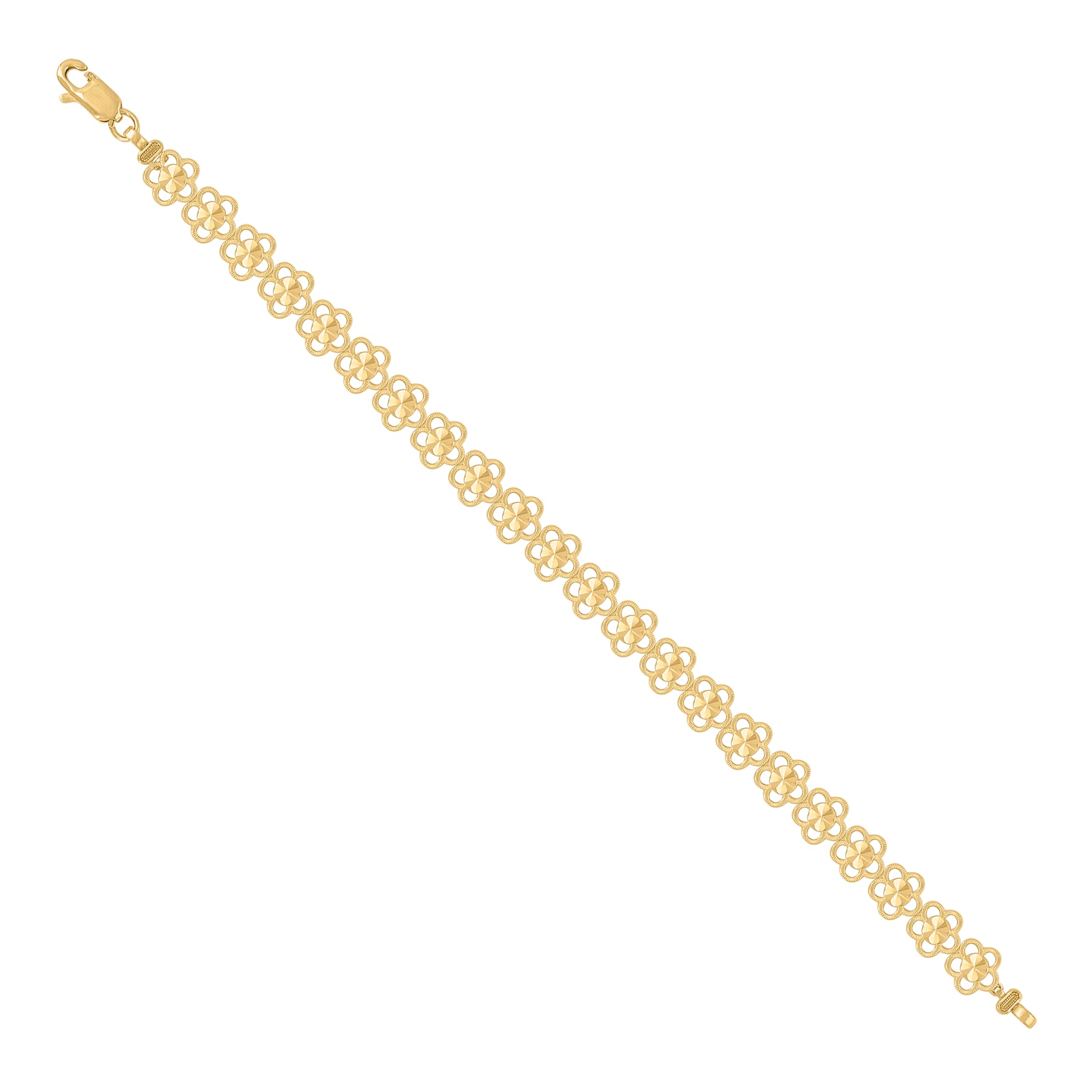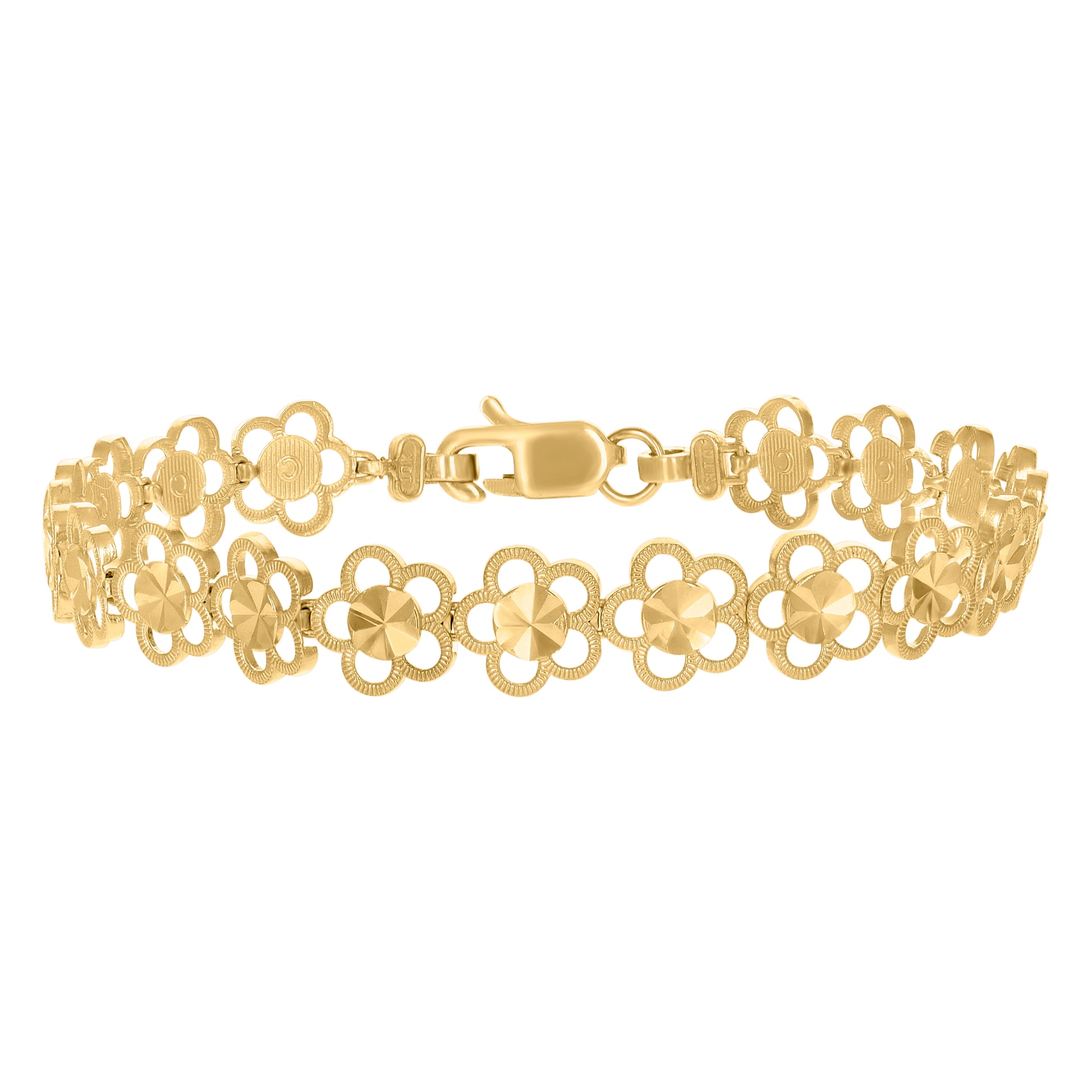 10kt Yellow Gold Womens Flower Link 8" Bracelet