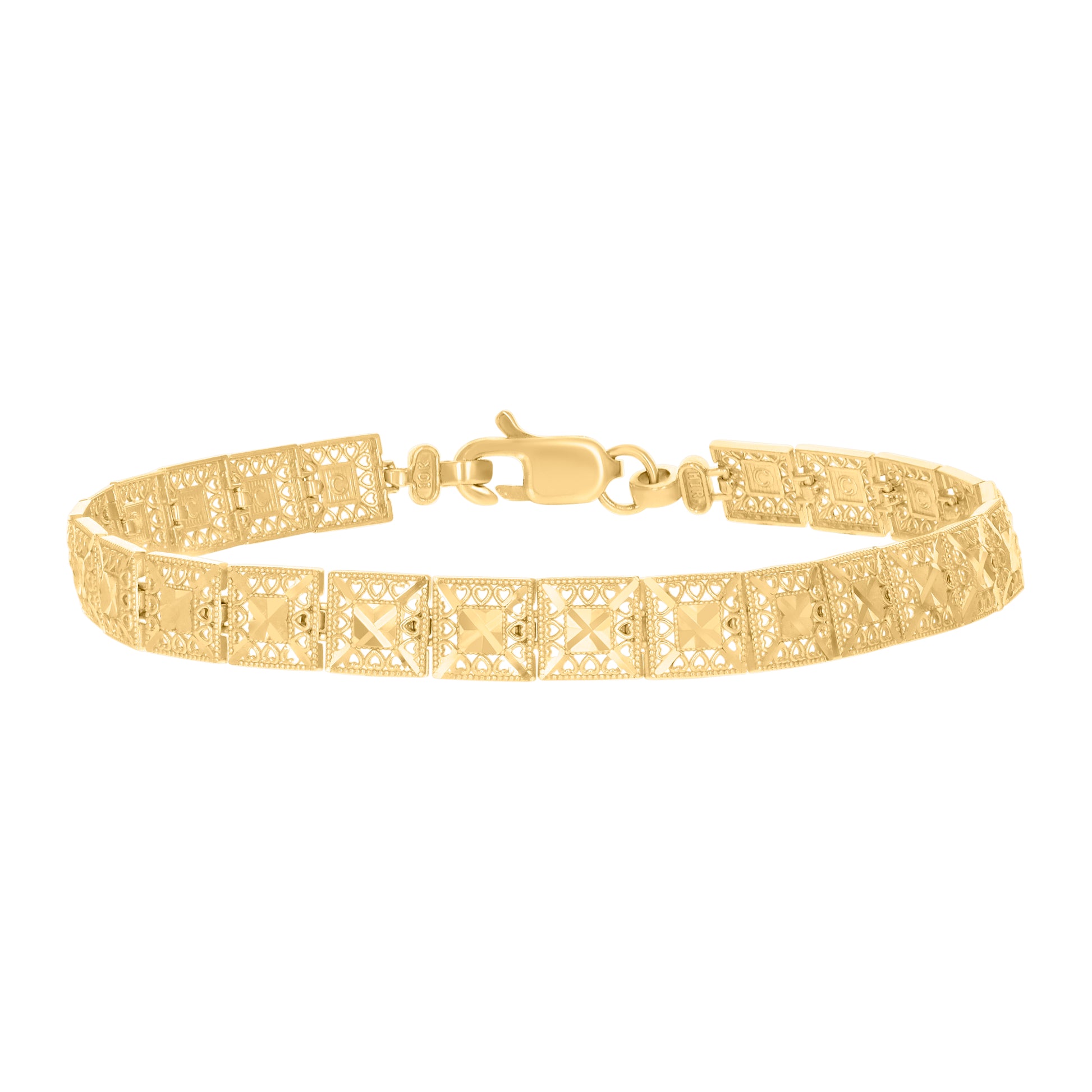 10Kt Yellow Gold Womens Square Link Bracelet Size 7 Inches