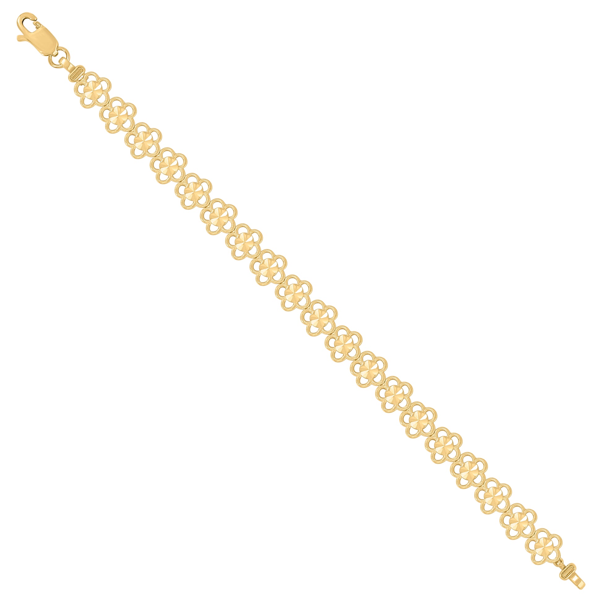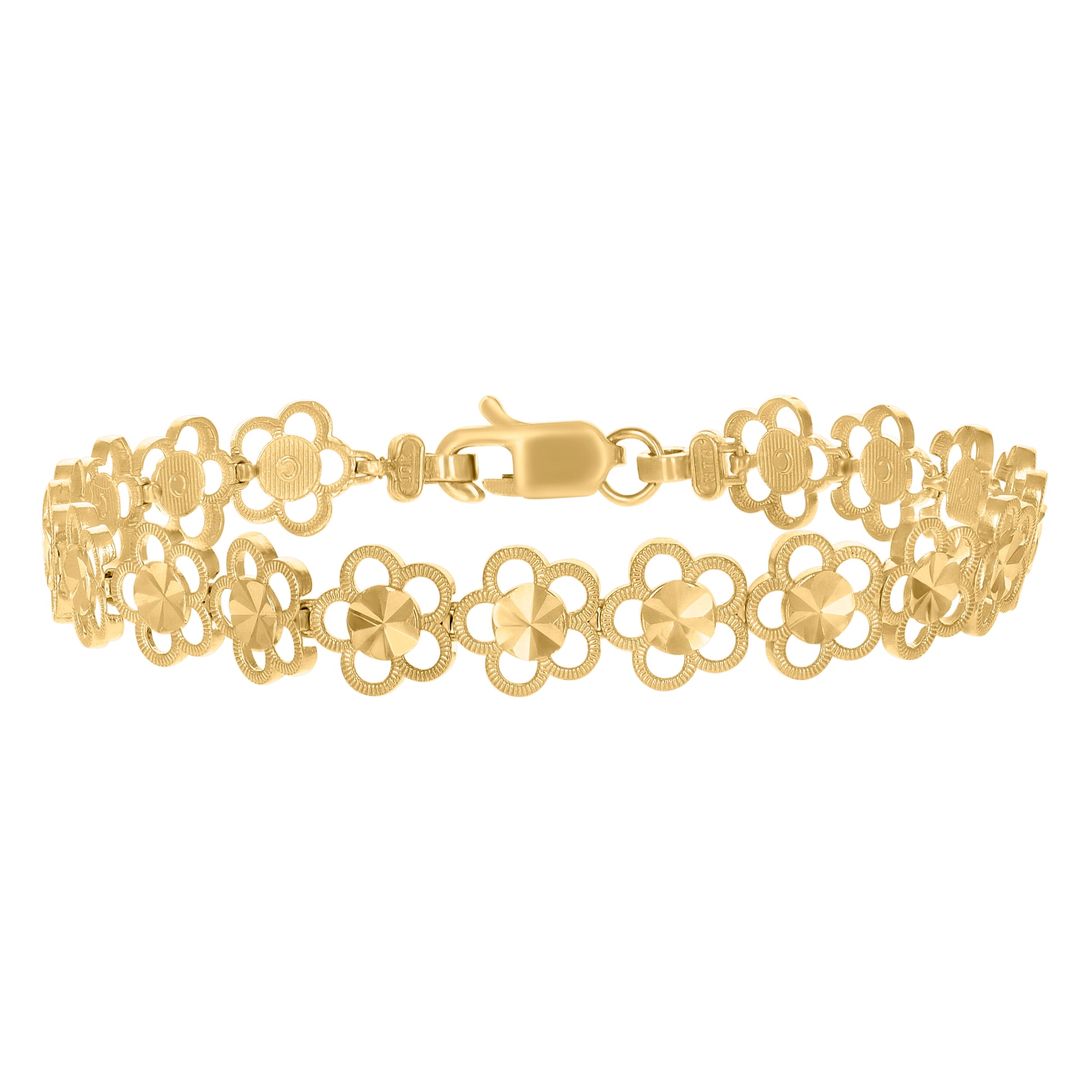 10kt Yellow Gold Womens Flower Link 7" Bracelet
