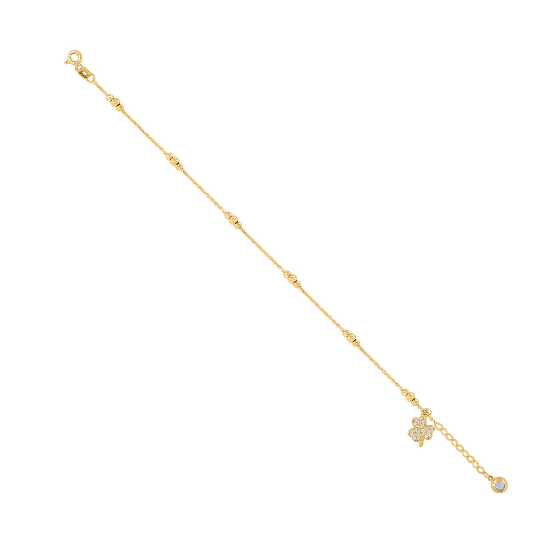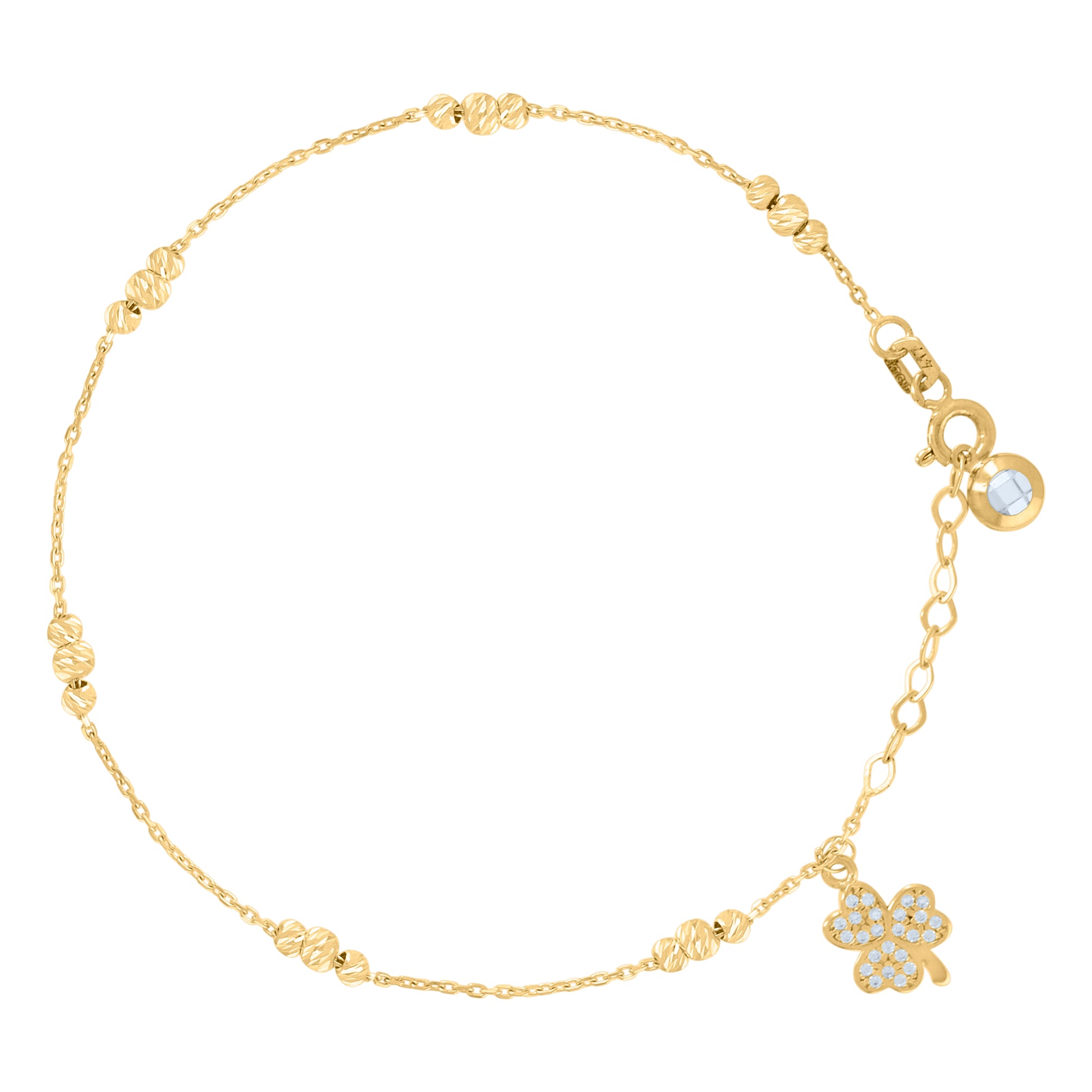 10kt Yellow Gold Womens Cubic-Zirconia Clover Beaded Good Luck Charm 8" Bracelet