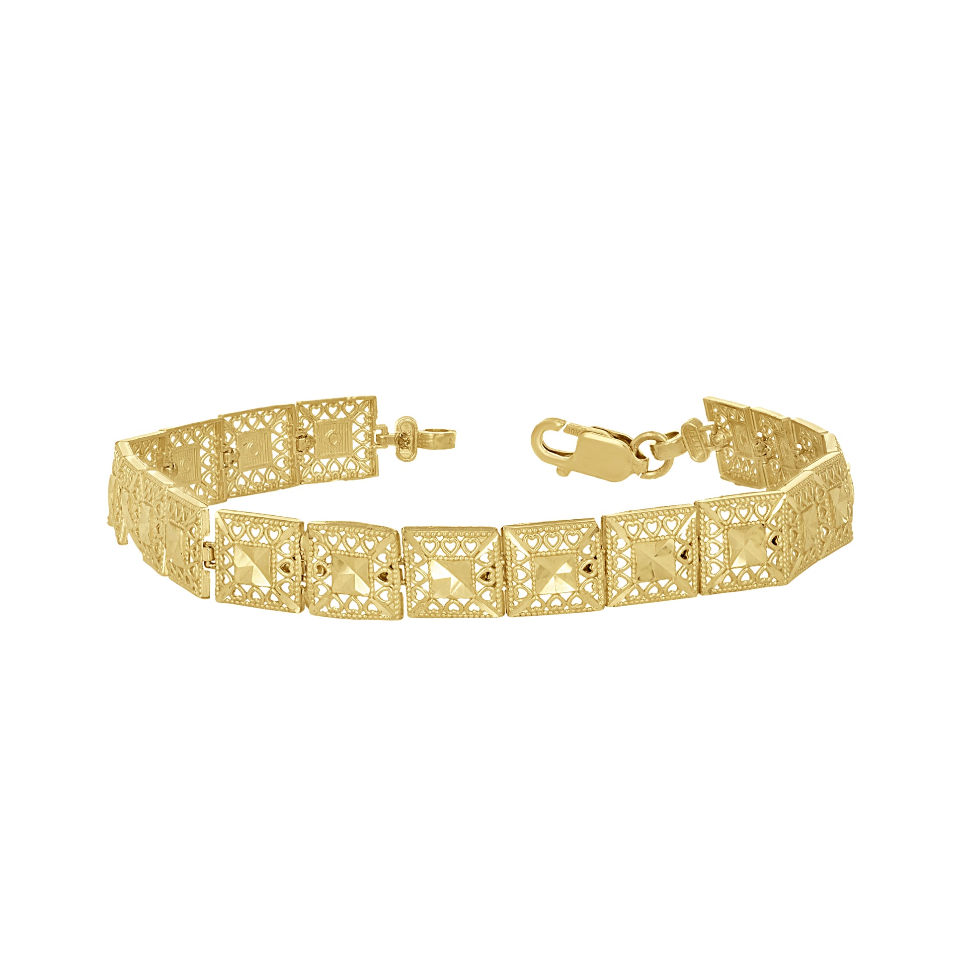 10Kt Yellow Gold Womens Square Link Bracelet Size 7 Inches