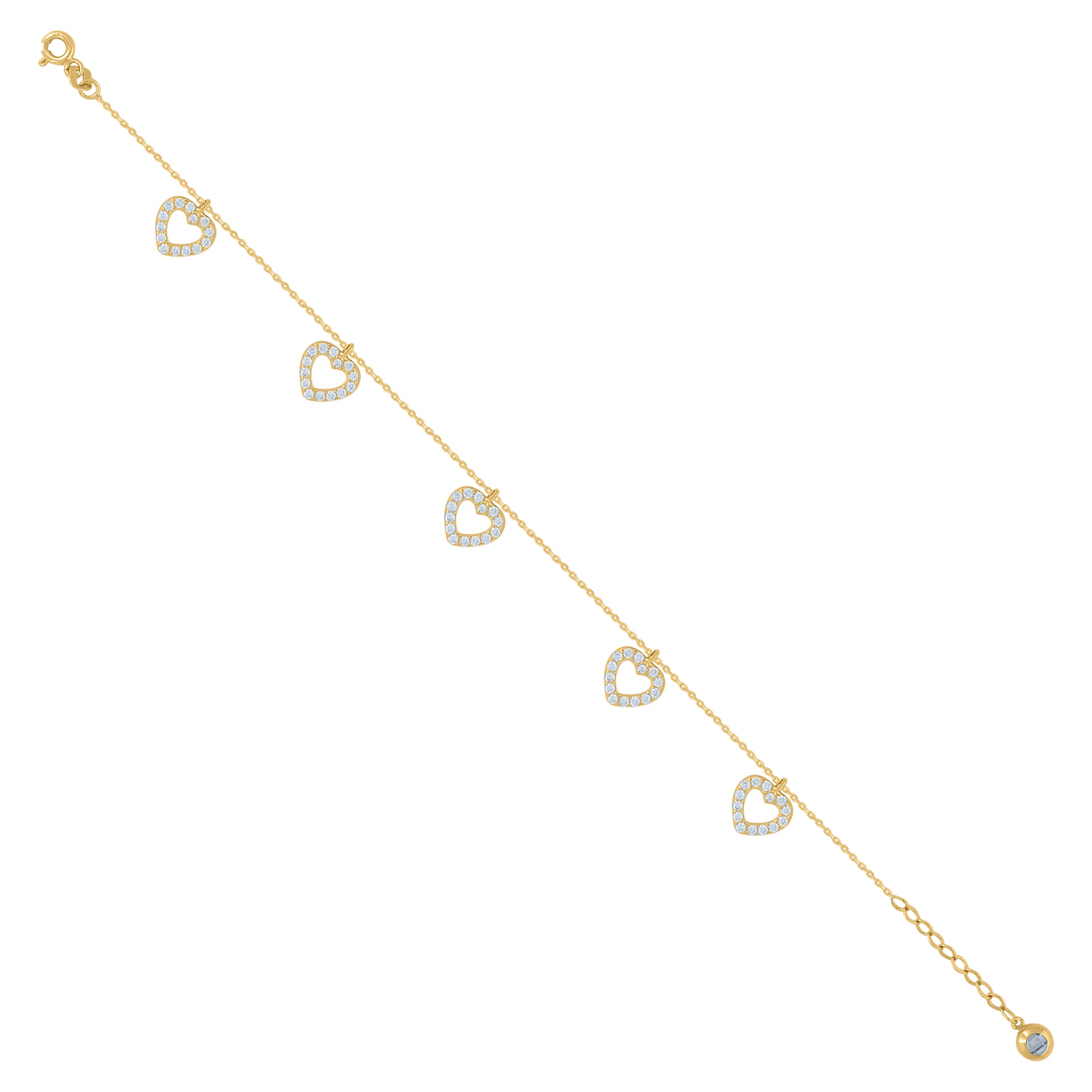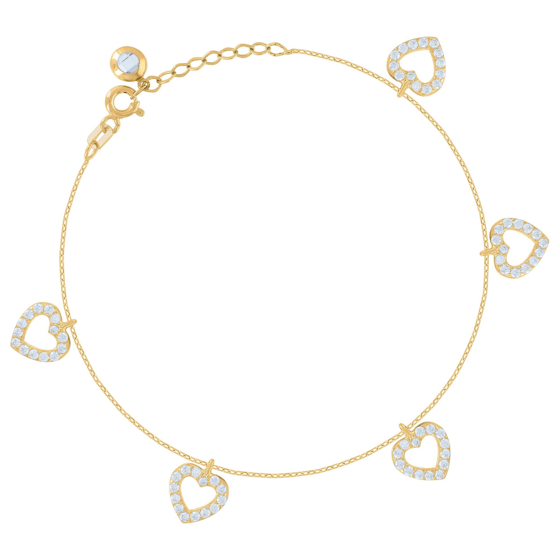 10kt Yellow Gold Womens Cubic-Zirconia Heart Charm 8" Bracelet