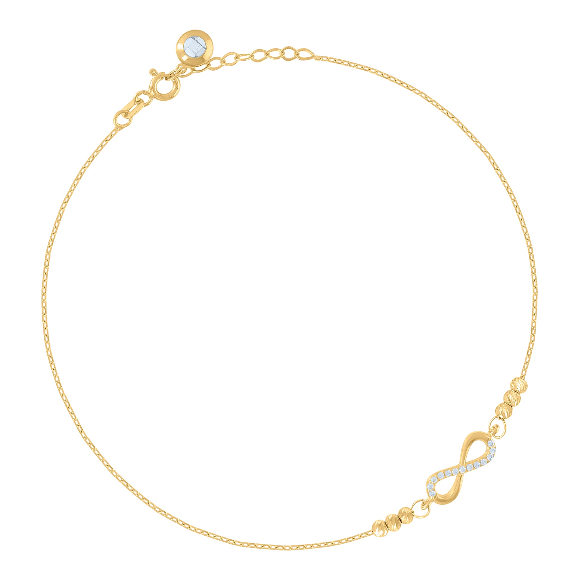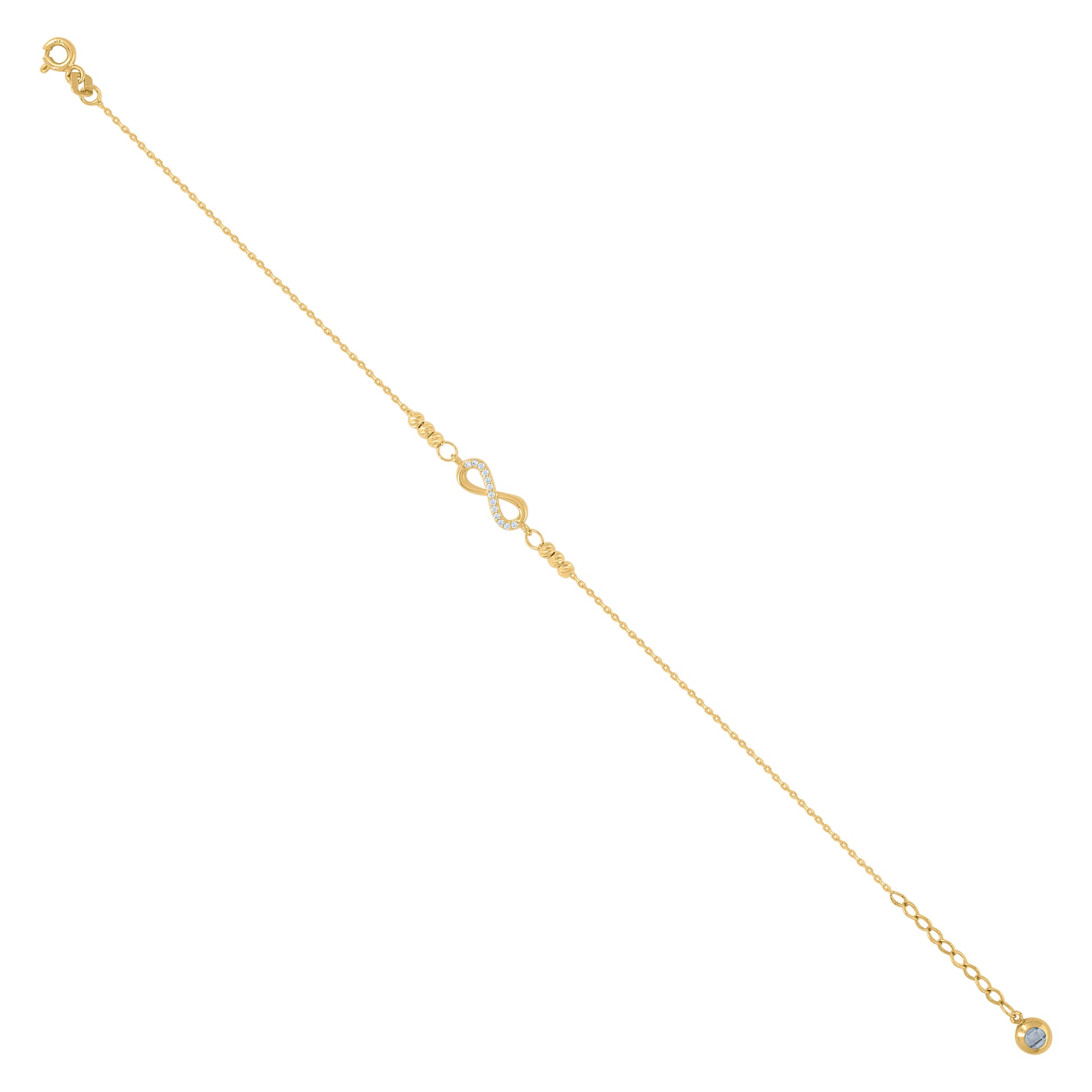 10kt Yellow Gold Womens Cubic-Zirconia Infinity Beaded Charm 9" Bracelet