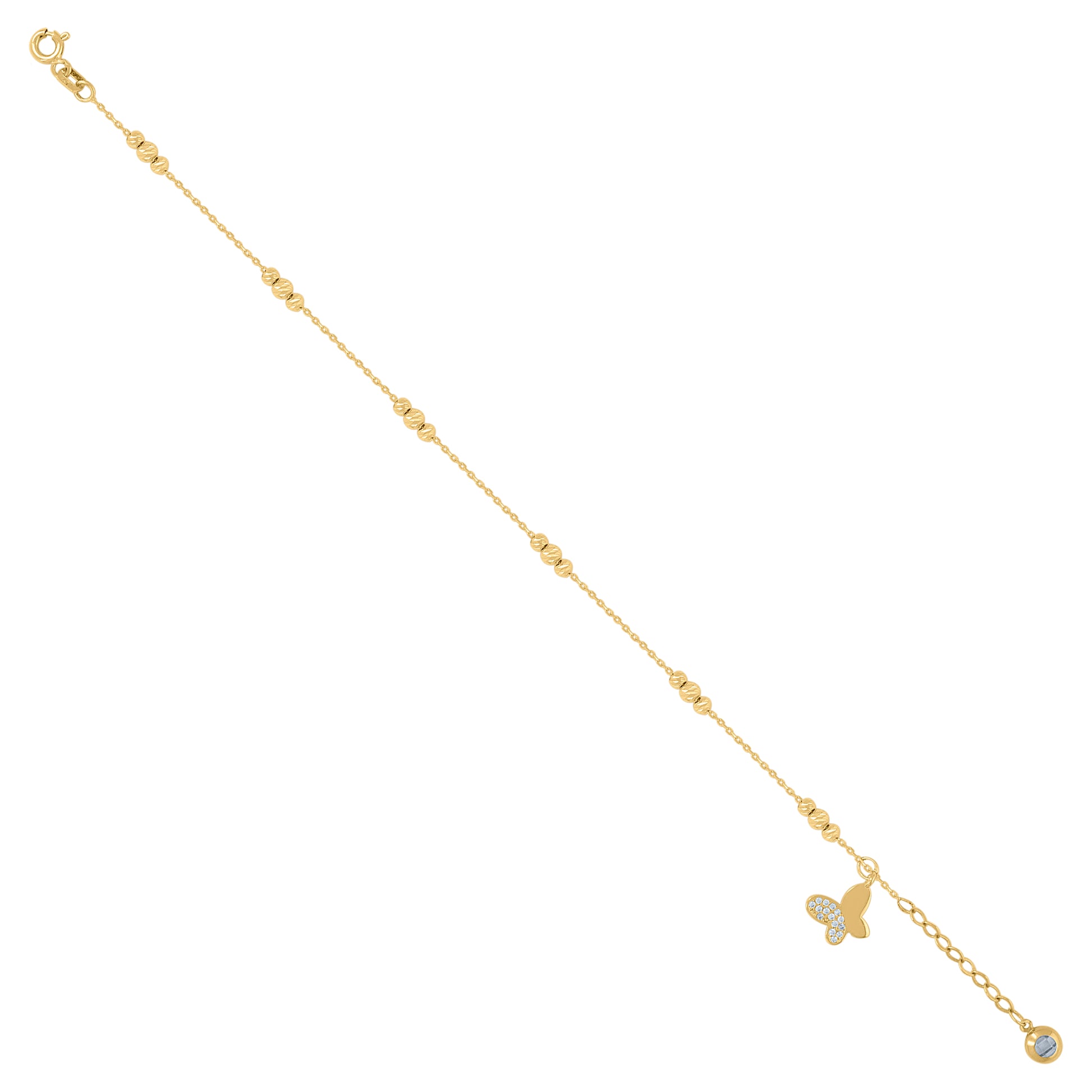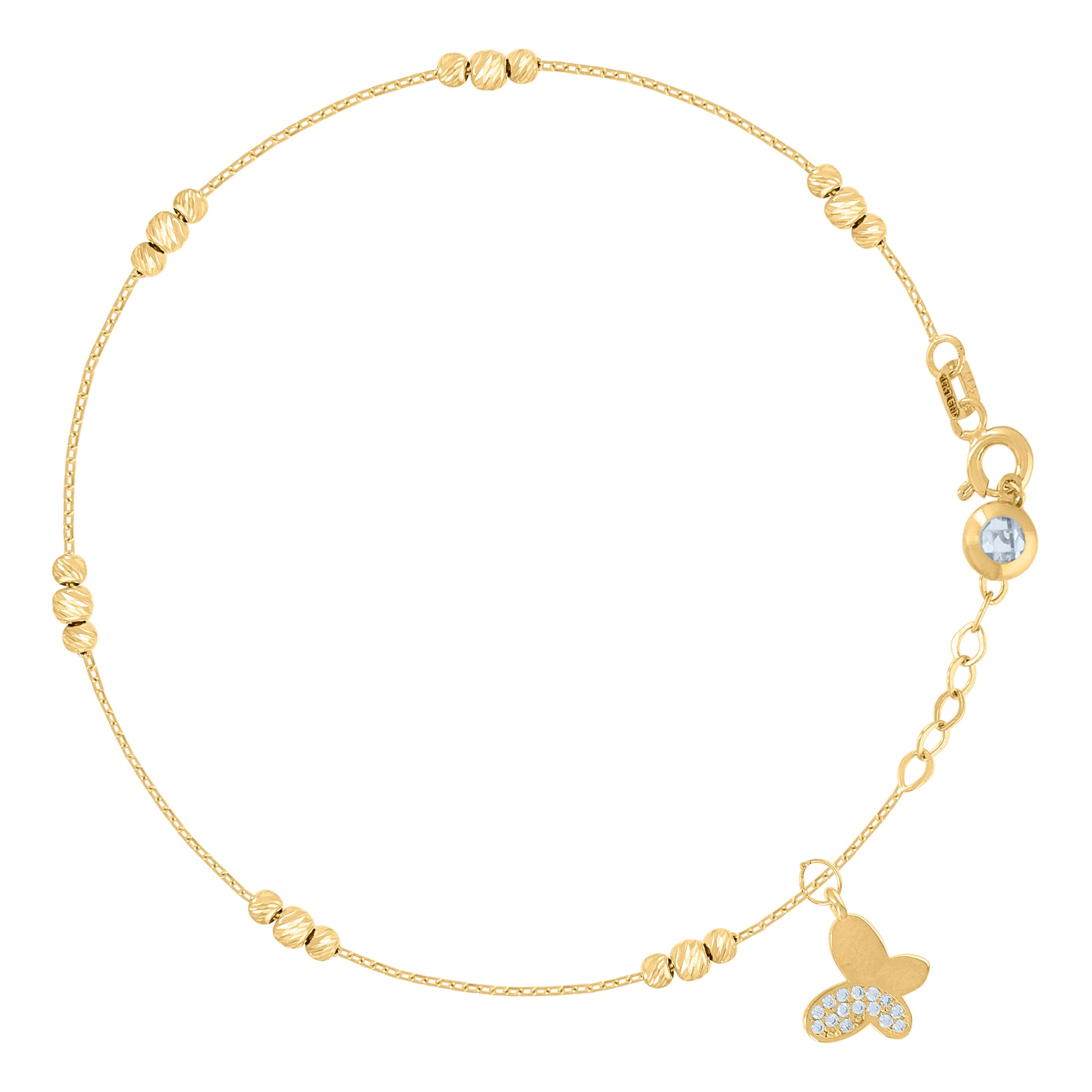 10kt Yellow Gold Womens Cubic-Zirconia Butterfly Beaded Charm 8" Bracelet
