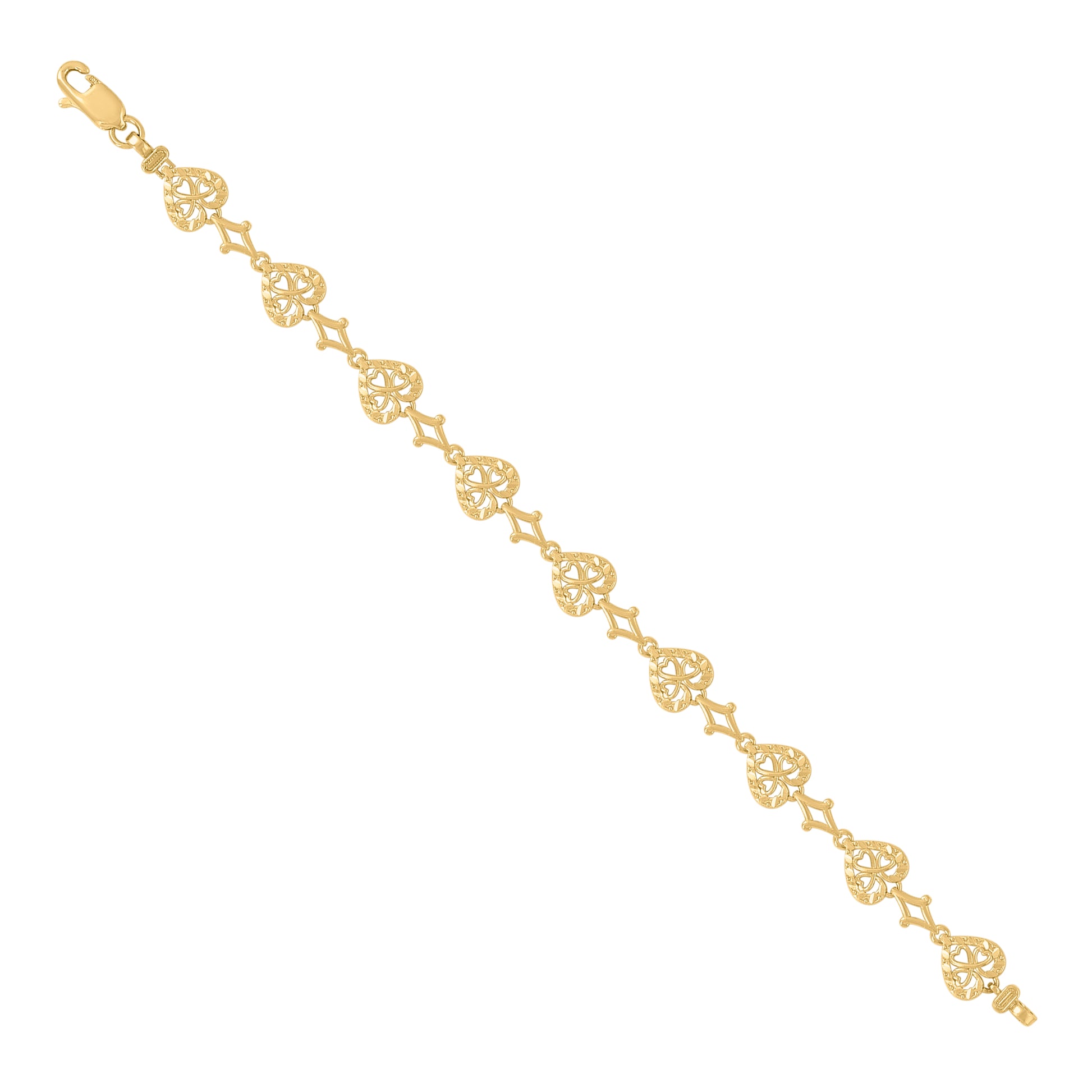 10kt Yellow Gold Womens Heart Link 7" Bracelet