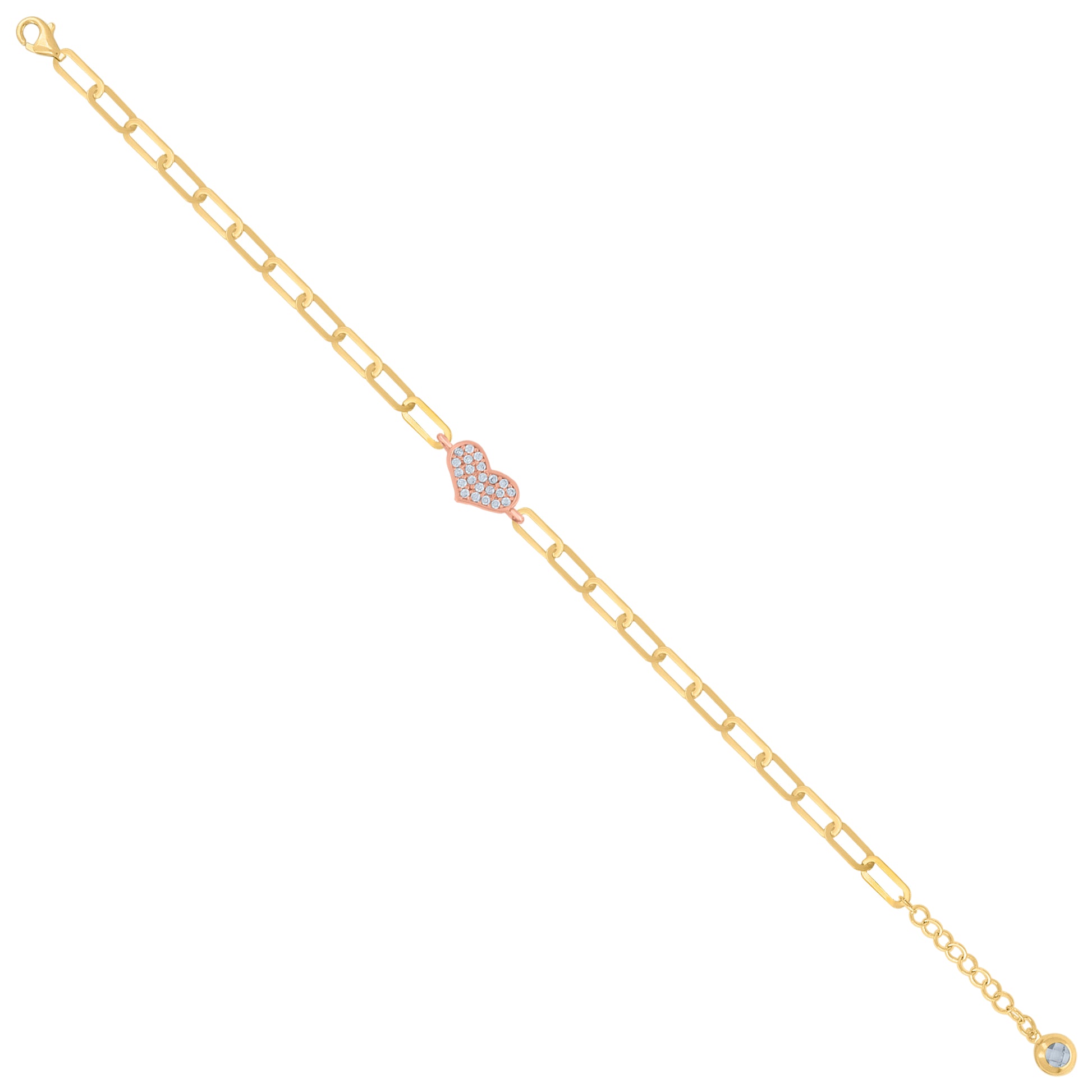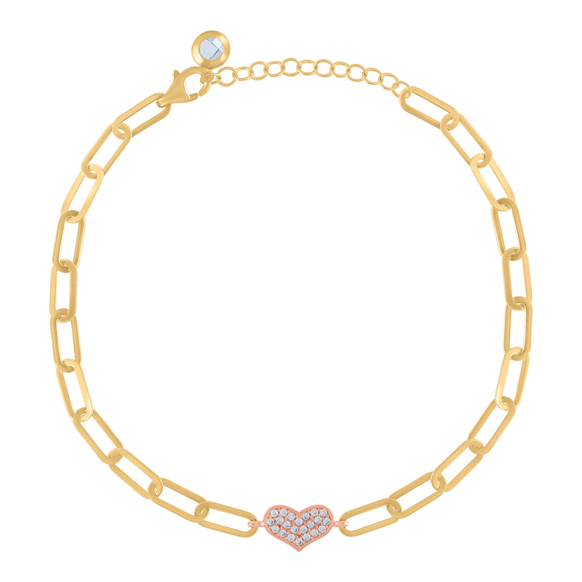 10kt Two-tone Gold Womens Cubic-Zirconia Heart Charm Bracelet Size 8 Inches