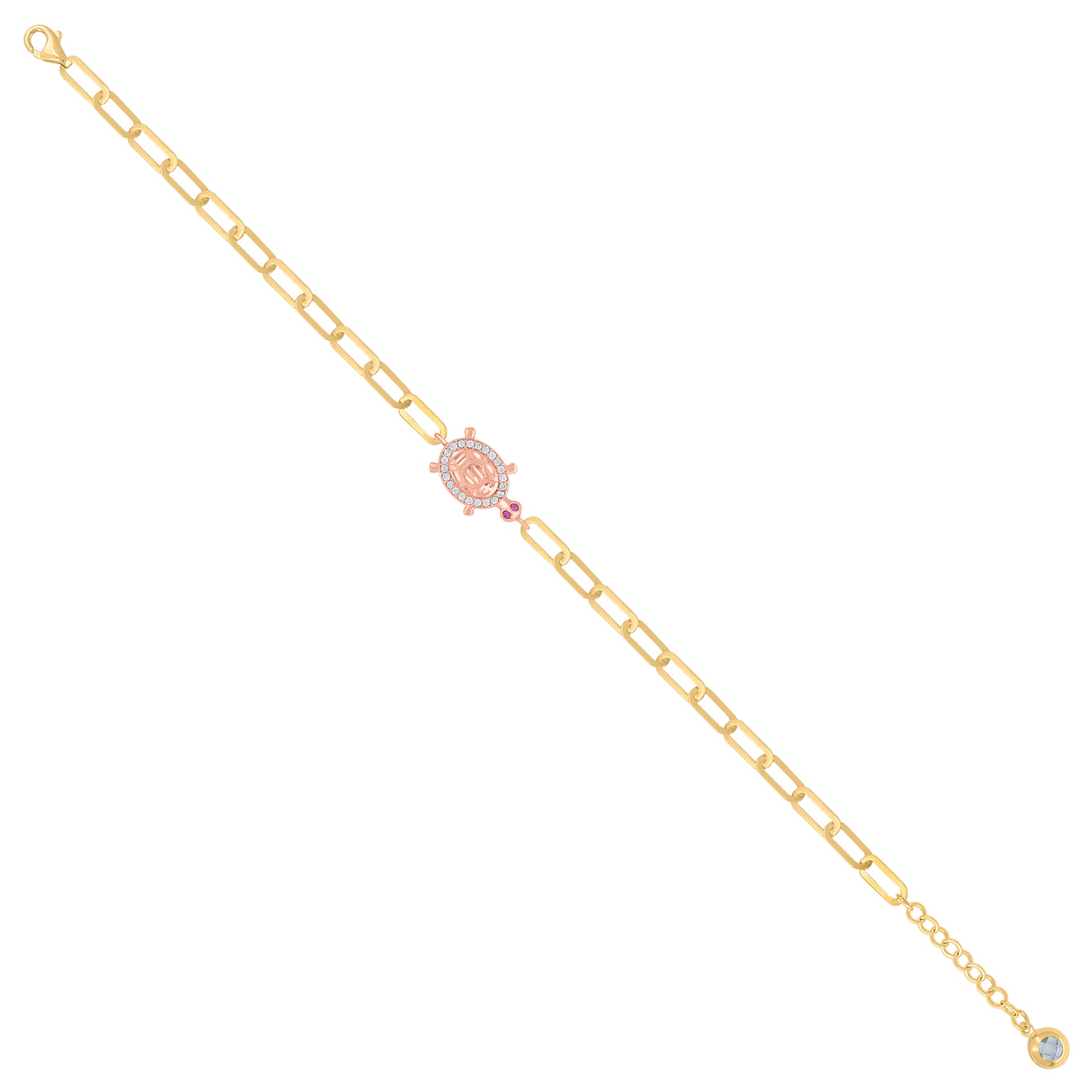10kt Two-tone Gold Womens Purple Cubic-Zirconia Turtle Animal Charm Bracelet Size 8 Inches