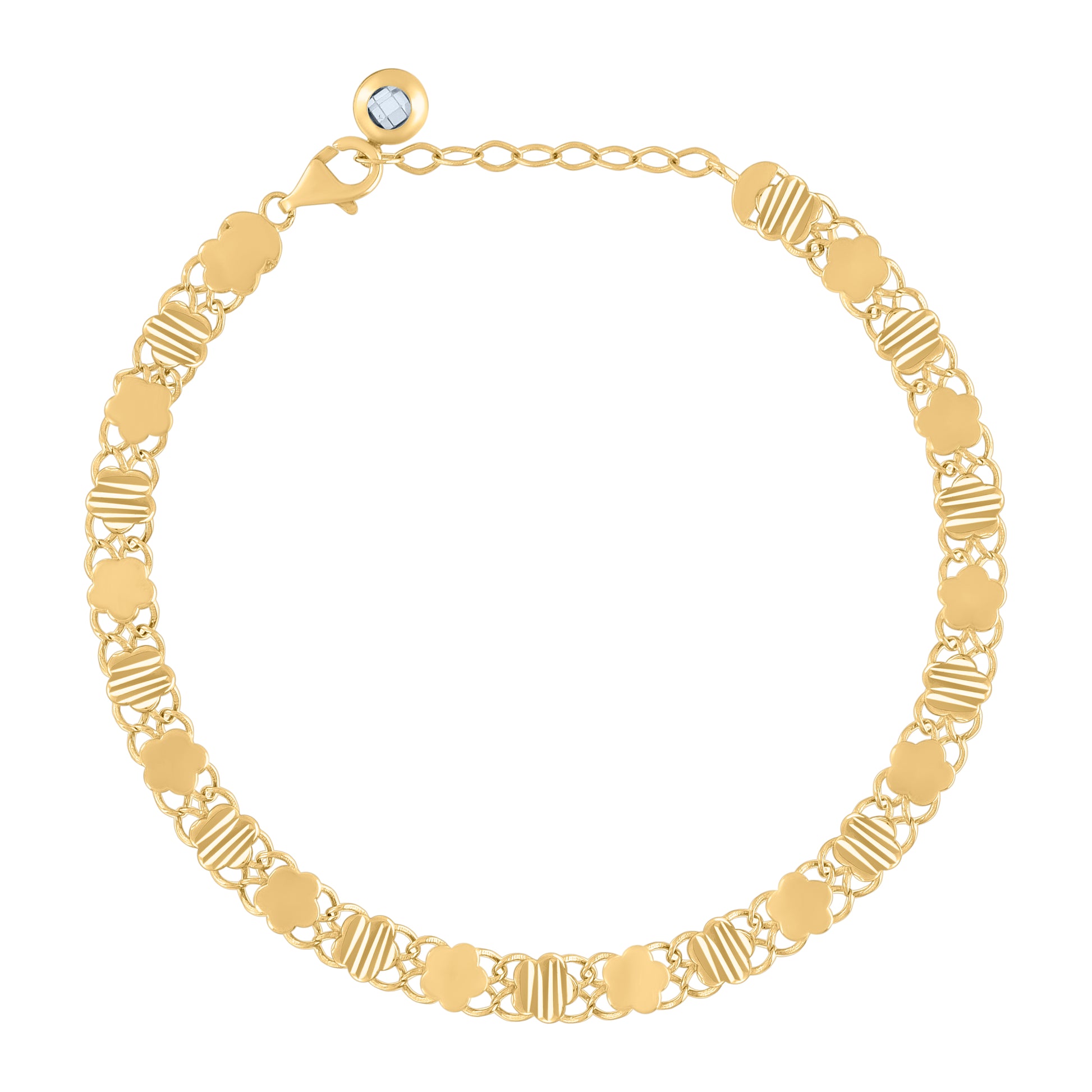 10kt Yellow Gold Womens Cubic-Zirconia Flower Link Bracelet Size 8 Inches