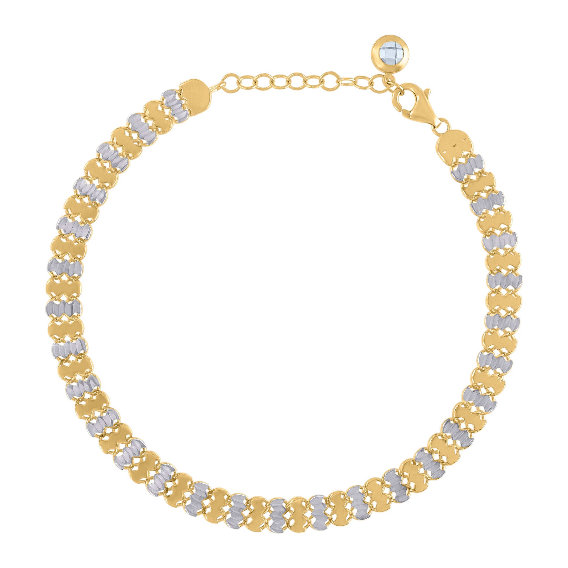 10kt Two-tone Gold Womens Cubic-Zirconia Fashion Link Bracelet Size 8 Inches