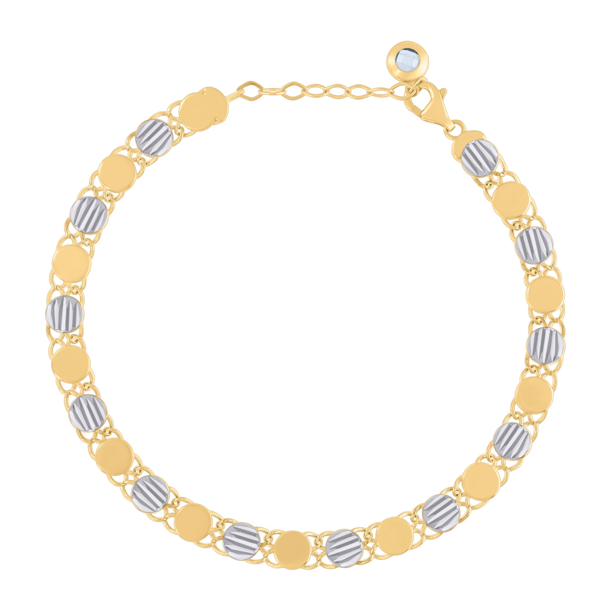 10kt Two-tone Gold Womens Cubic-Zirconia Fashion Link Bracelet Size 8 Inches