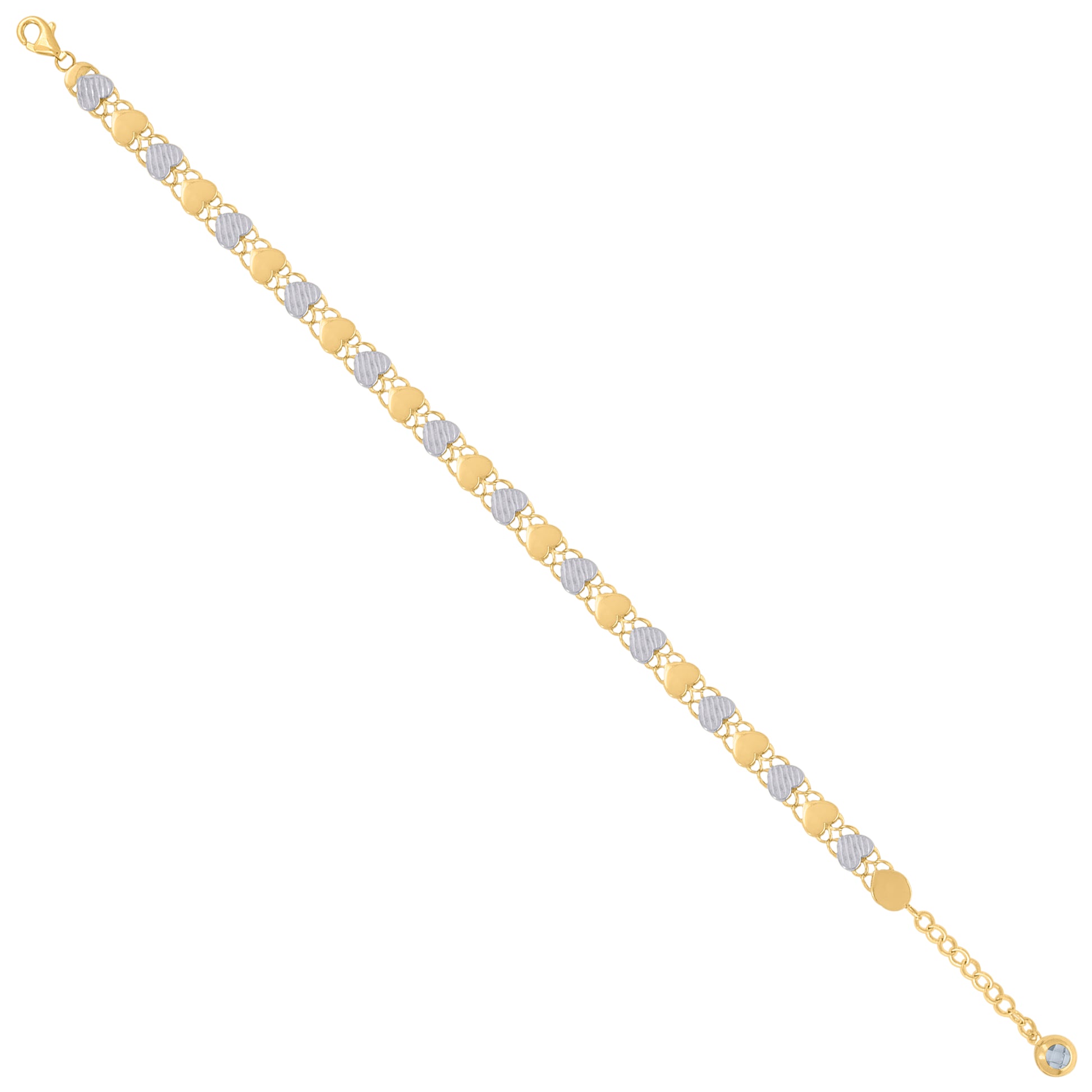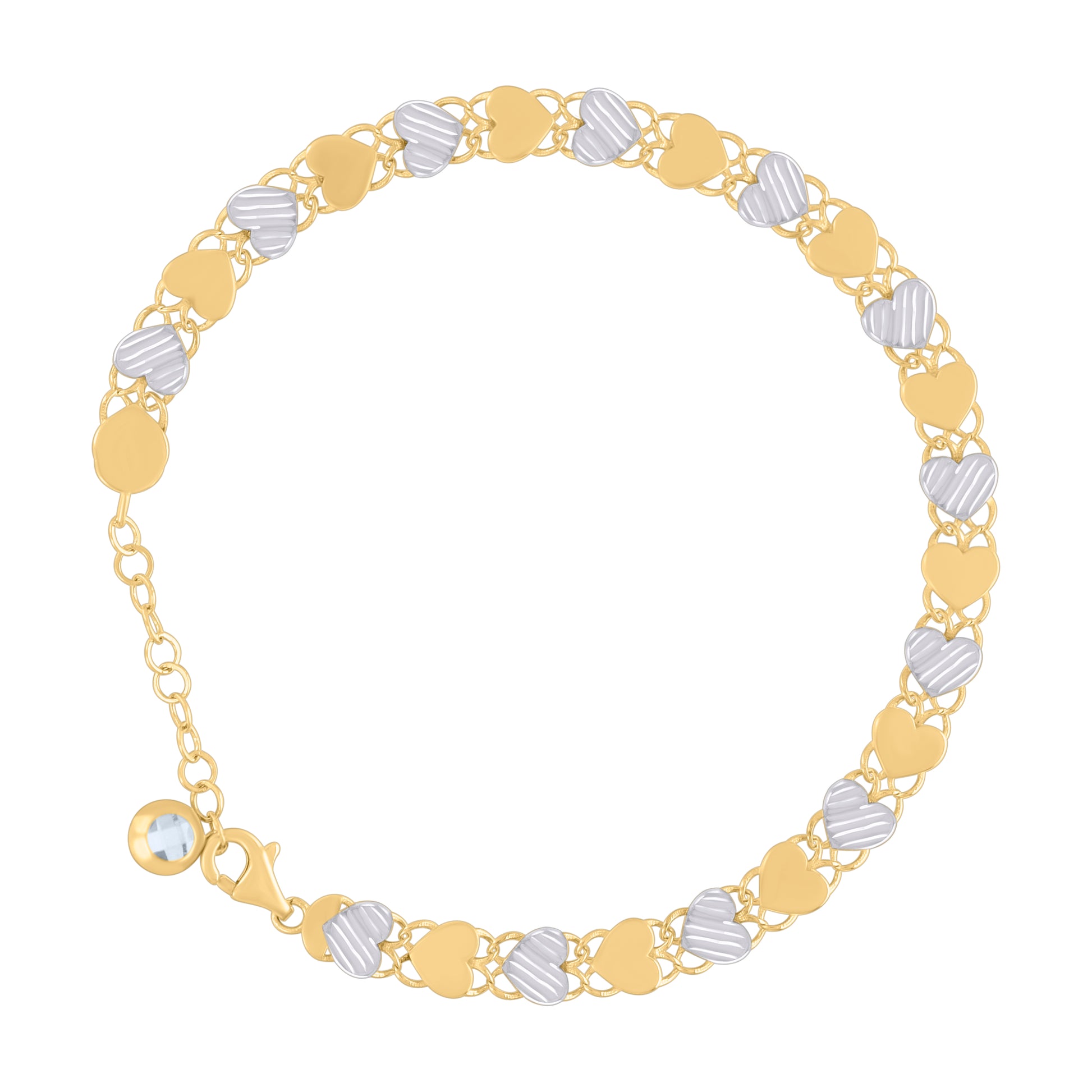10kt Two-tone Gold Womens Cubic-Zirconia Heart Link Bracelet Size 8 Inches