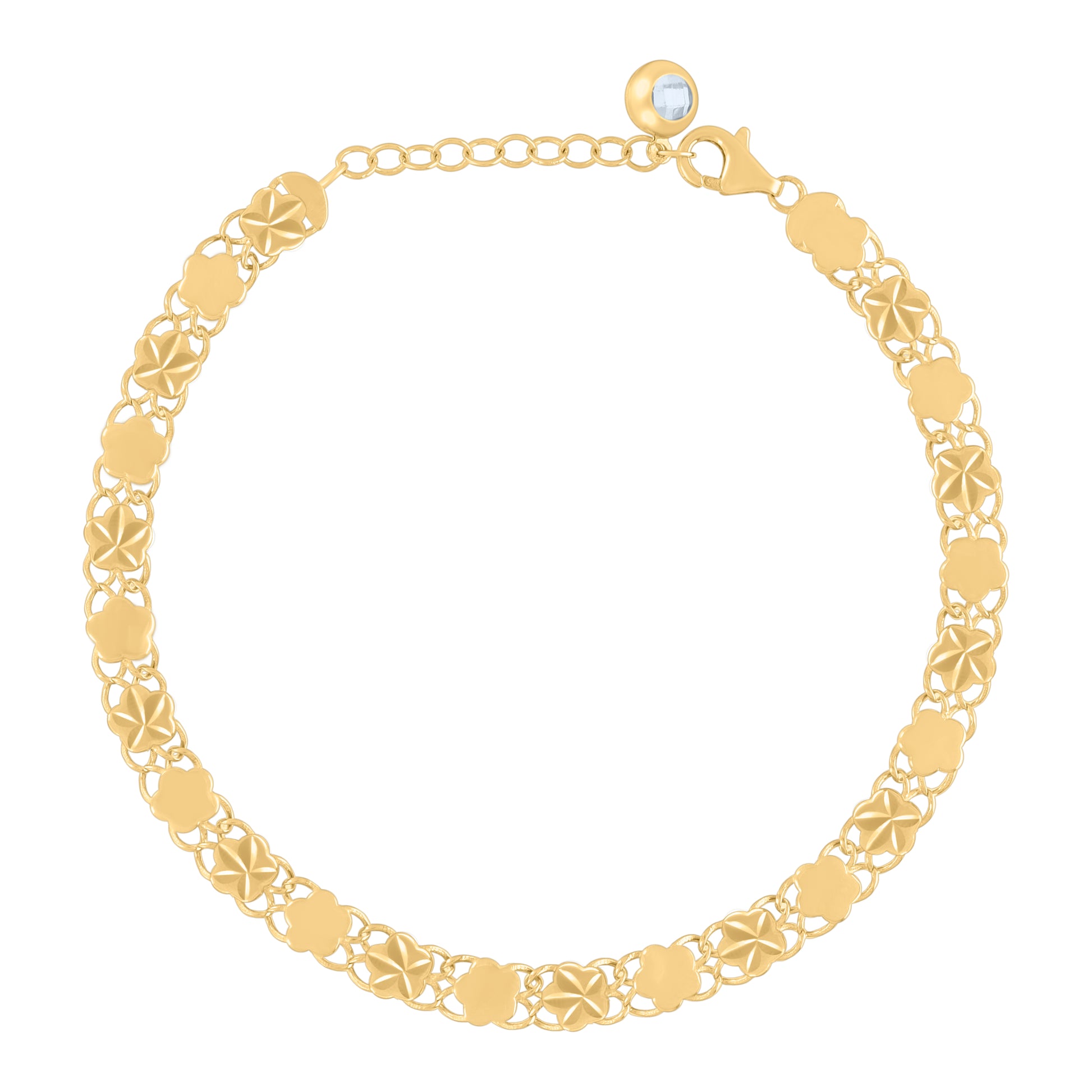 10kt Yellow Gold Womens Cubic-Zirconia Flower Link Bracelet Size 8 Inches
