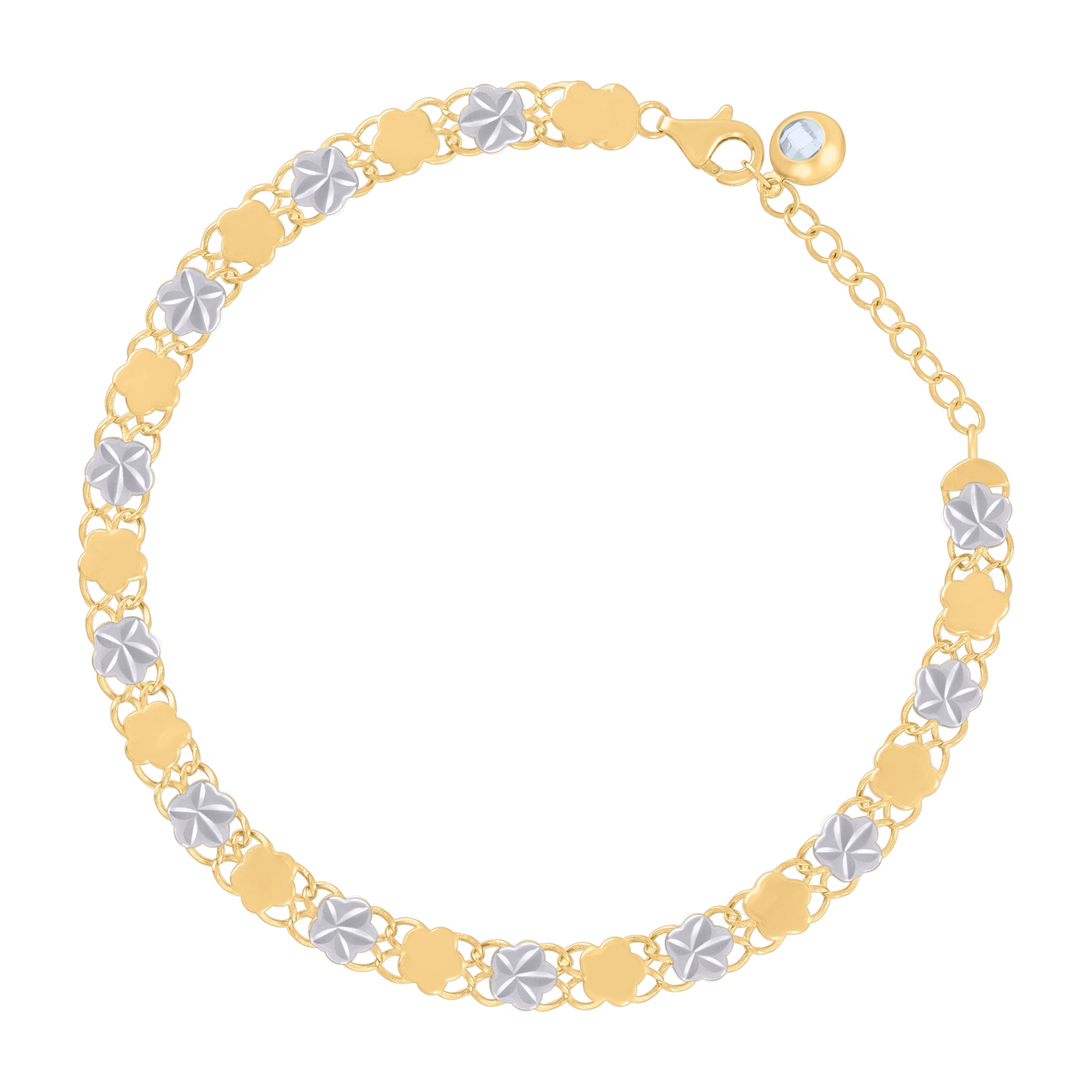 10kt Two-tone Gold Womens Cubic-Zirconia Flower Link Bracelet Size 8 Inches