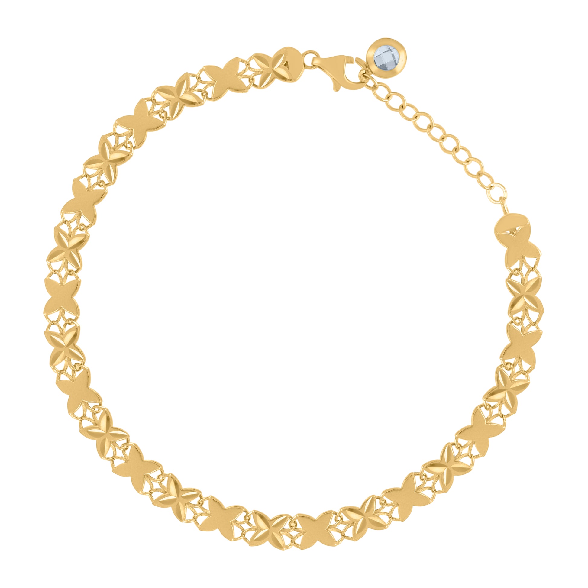 10kt Yellow Gold Womens Cubic-Zirconia Flower Link Bracelet Size 8 Inches
