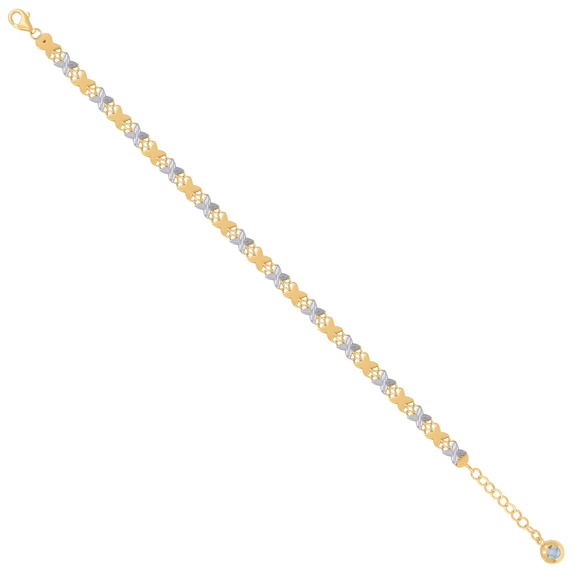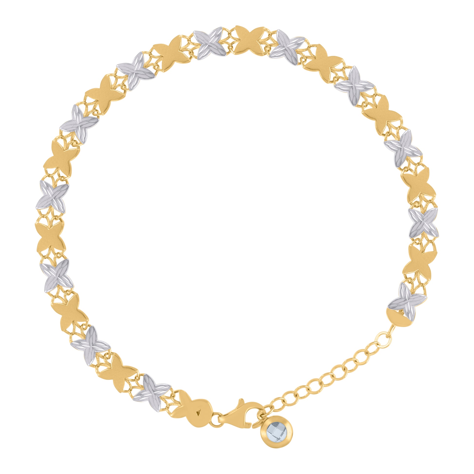 10kt Two-tone Gold Womens Cubic-Zirconia Flower Link Bracelet Size 8 Inches
