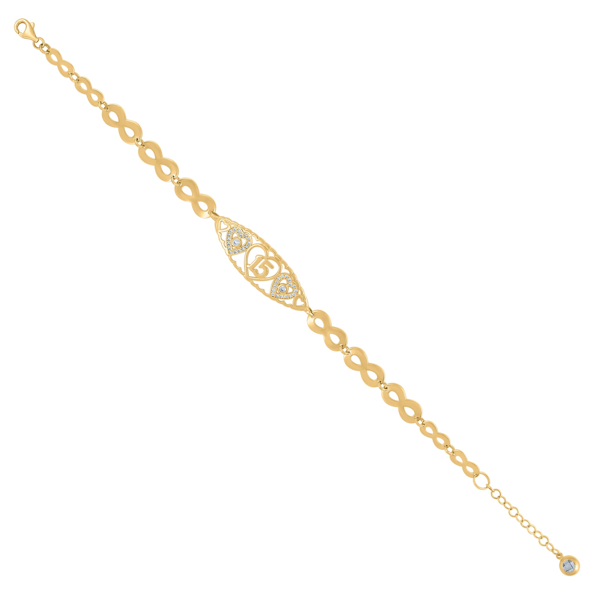 10kt Yellow Gold Womens Cubic-Zirconia Heart Quinceanera 15 Charm Bracelet Size 8 Inches
