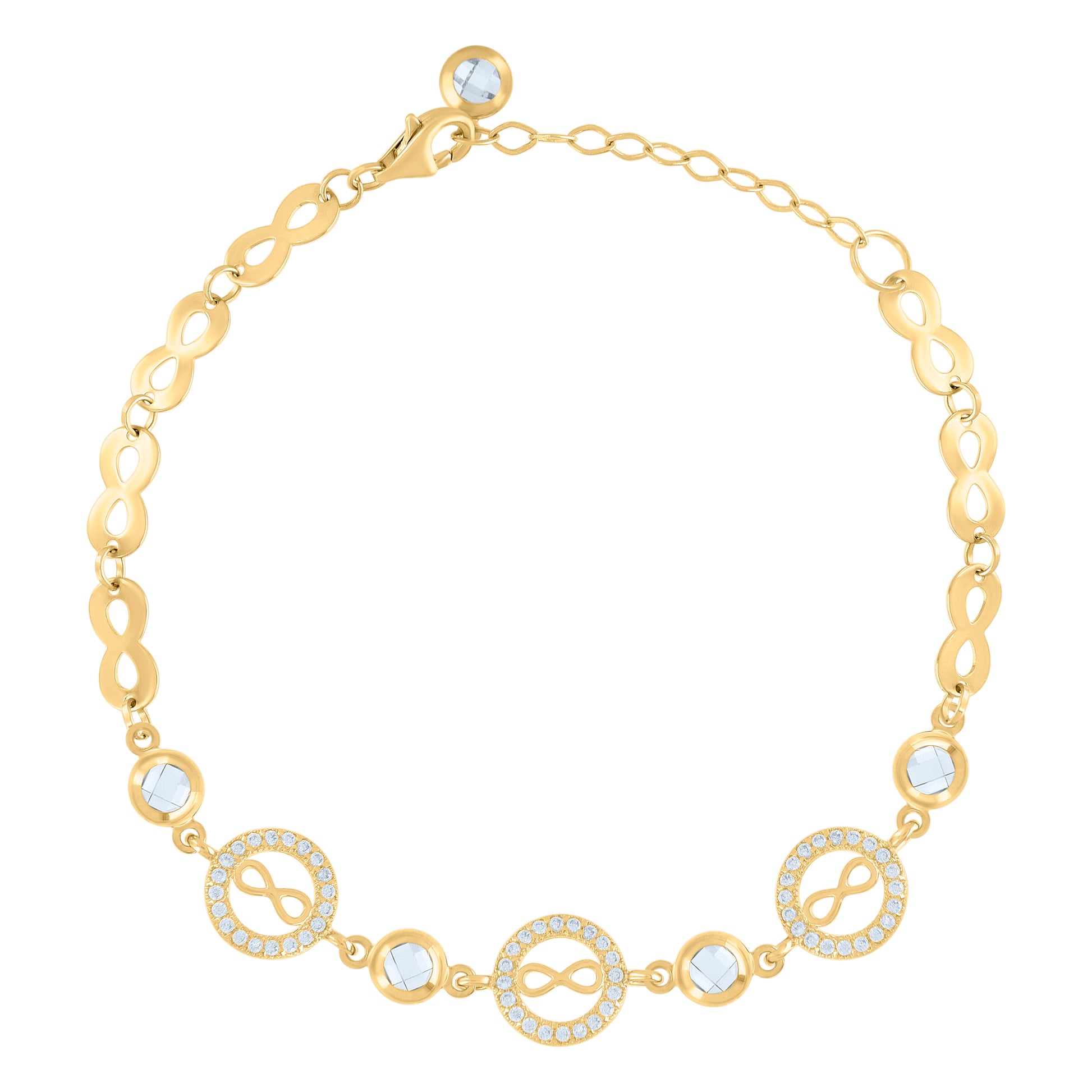 10kt Yellow Gold Womens Cubic-Zirconia Infinity Charm Bracelet Size 8 Inches