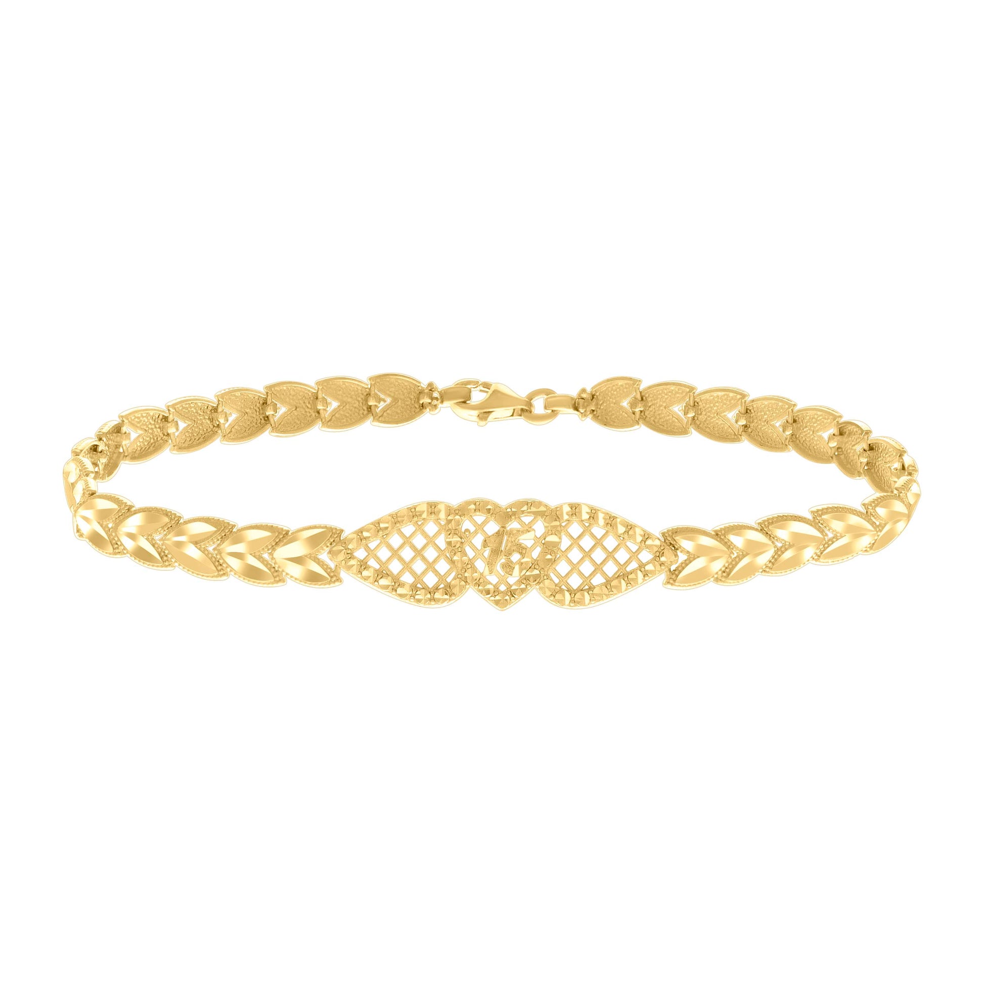 10kt Yellow Gold Womens Heart Charm Bracelet