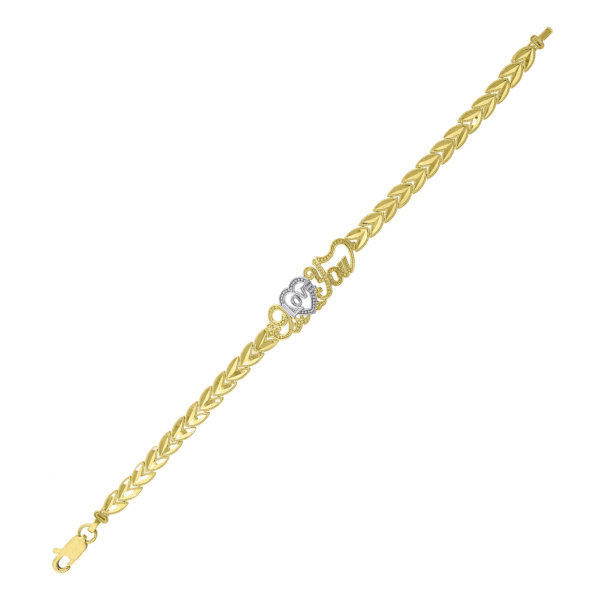10kt Two-tone Gold Womens I Love You Heart Charm Bracelet Size 8 Inches