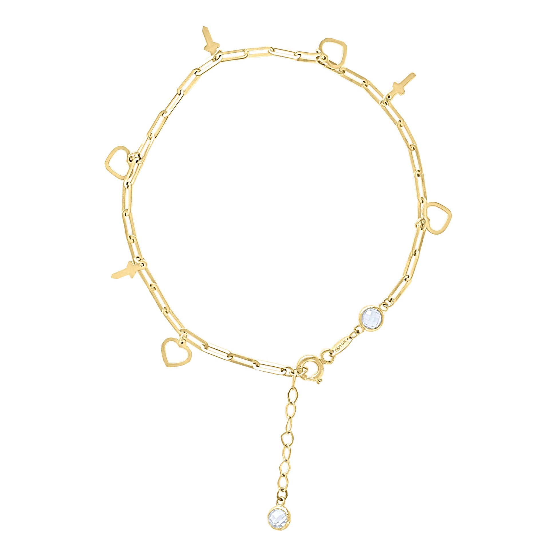 10kt Yellow Gold Womens Cubic-Zirconia Heart Cross Charms Chain Bracelet Size 7 + 1 Inches