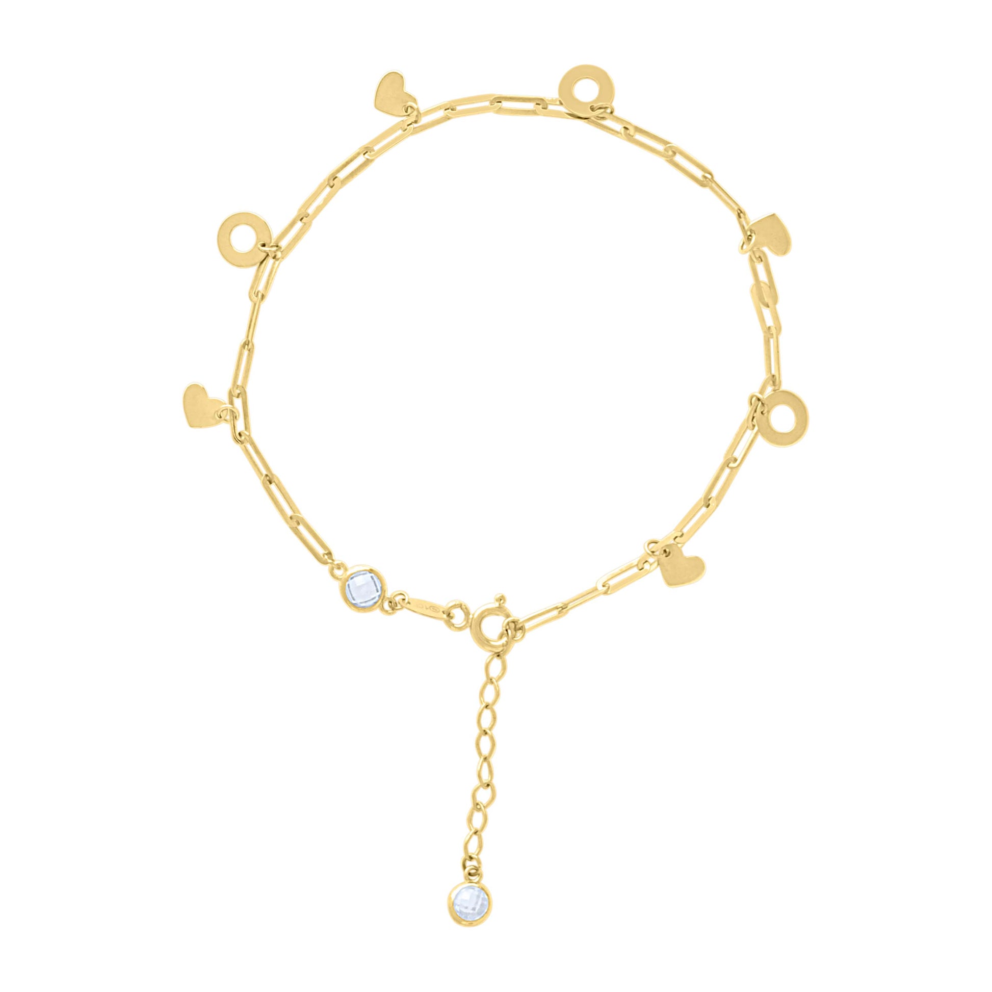 10kt Yellow Gold Womens Cubic-Zirconia Heart Charms Chain Bracelet Size 7 + 1 Inches