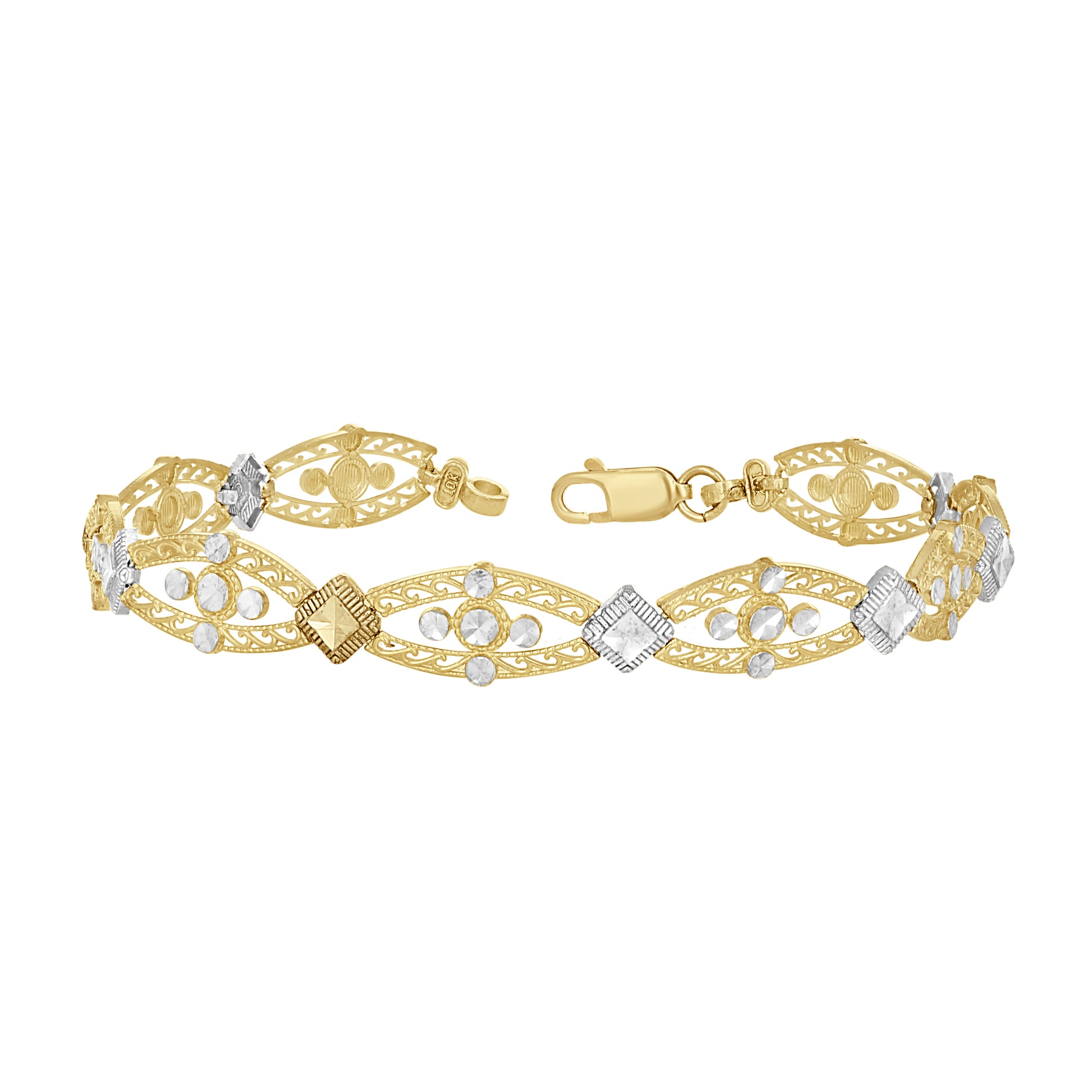 10kt Two-Tone Gold Womens Link Bracelet Size 8 Inches