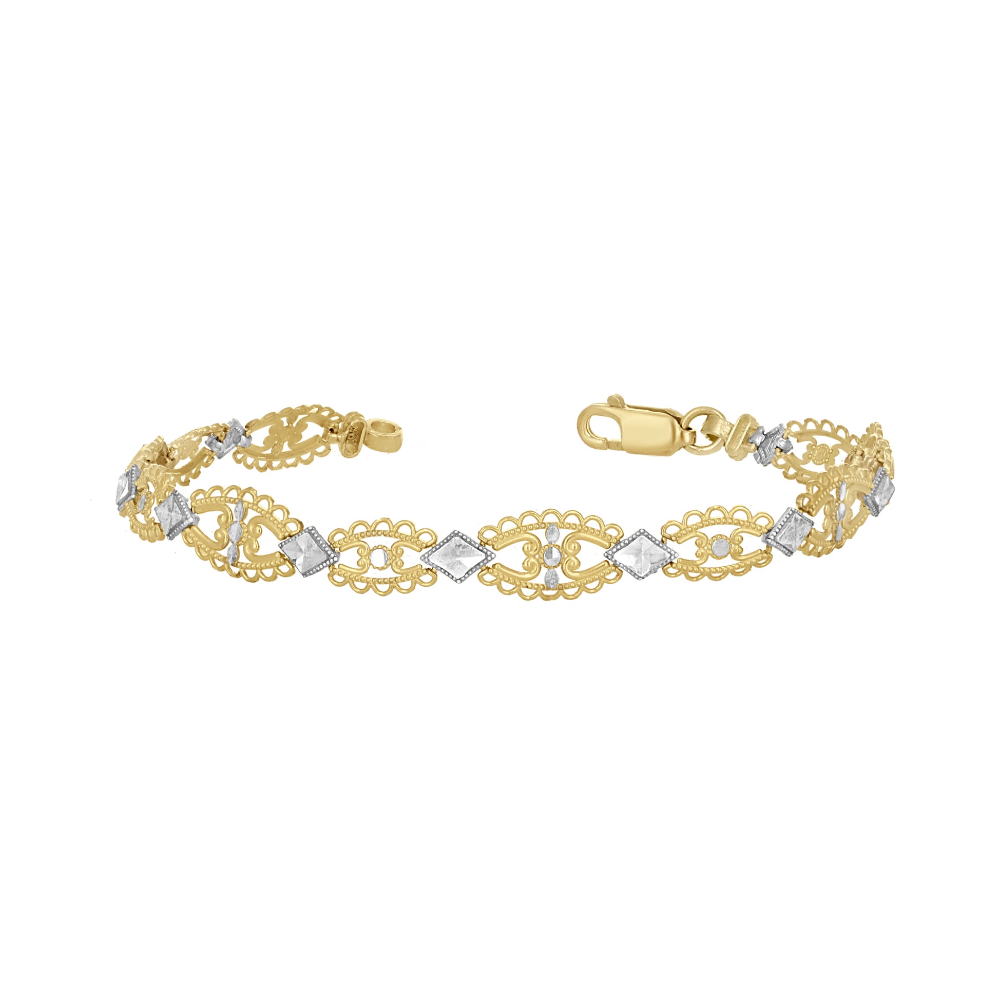 10kt Two-Tone Gold Womens Link Bracelet Size 7 Inches