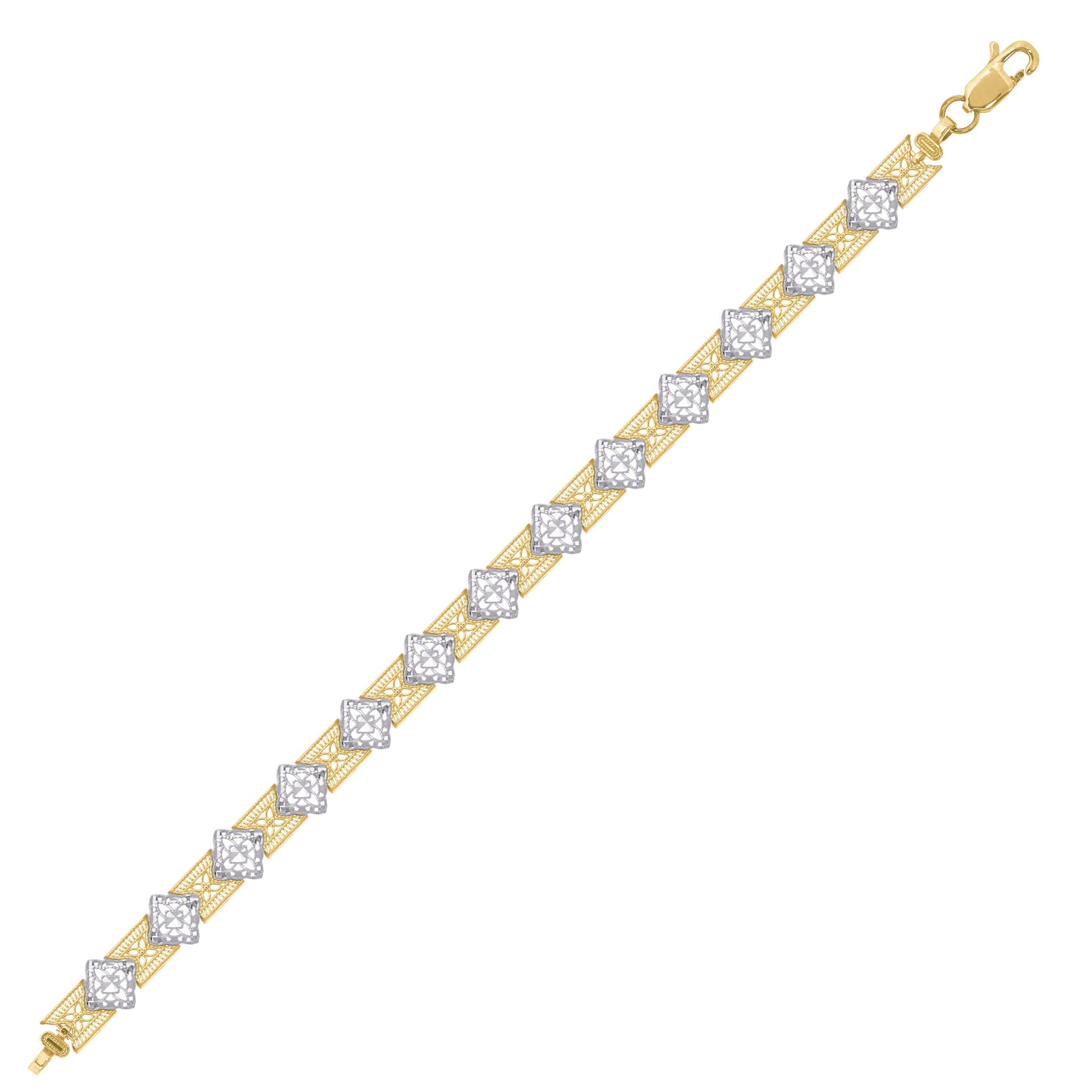 10kt Two-Tone Gold Womens Link Bracelet Size 7 Inches