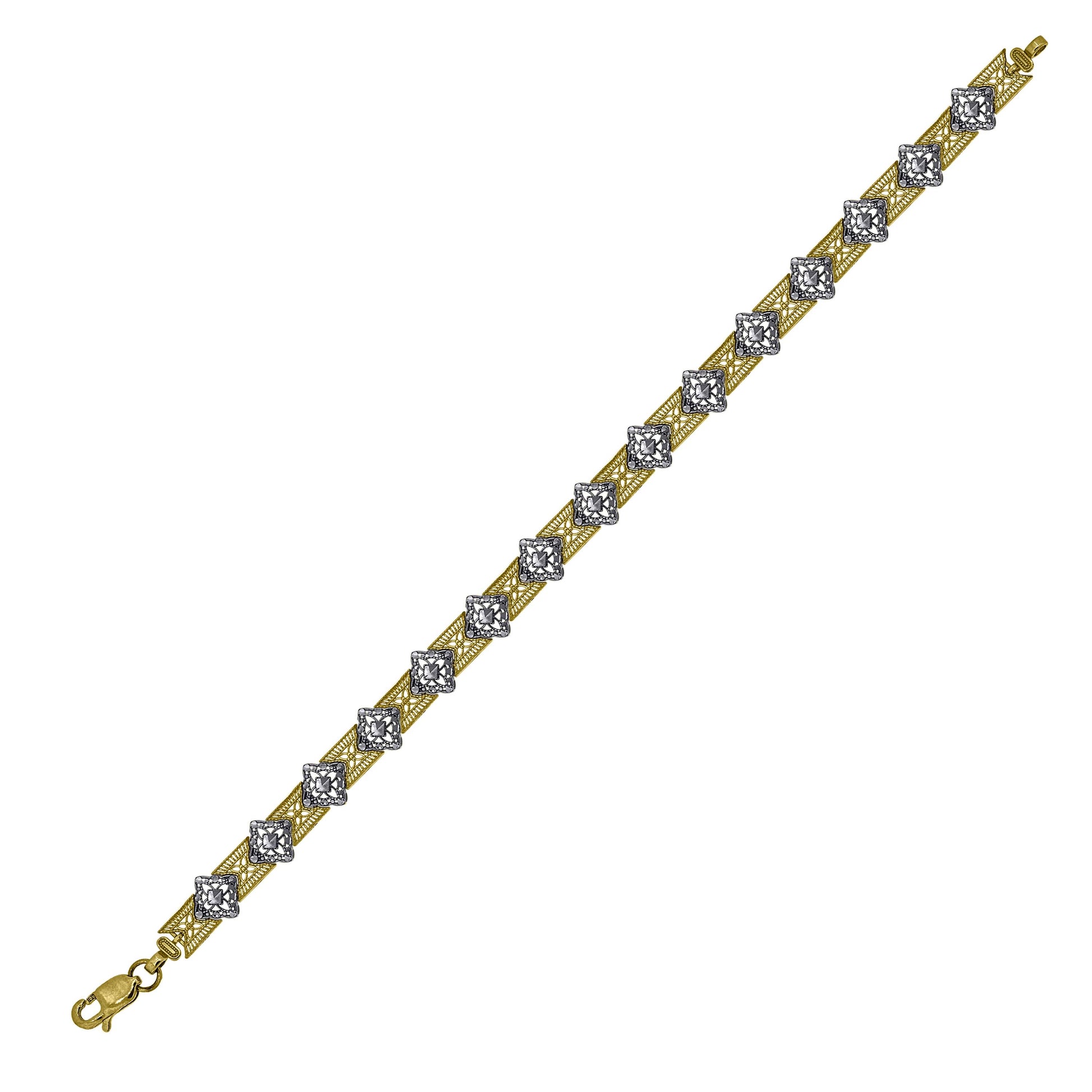 10kt Two-Tone Gold Womens Link Bracelet Size 8 Inches