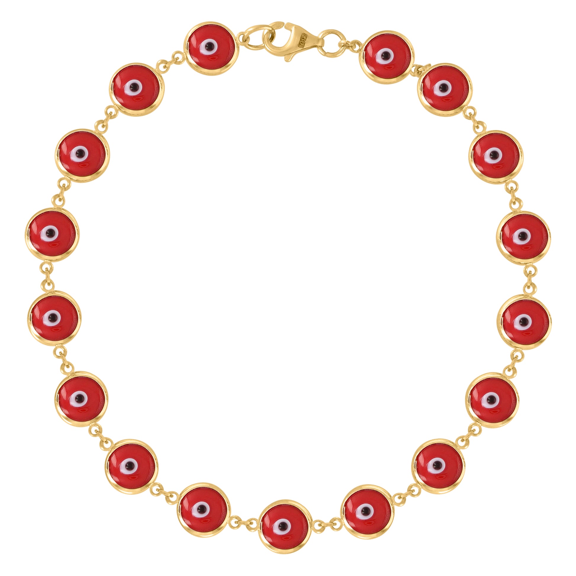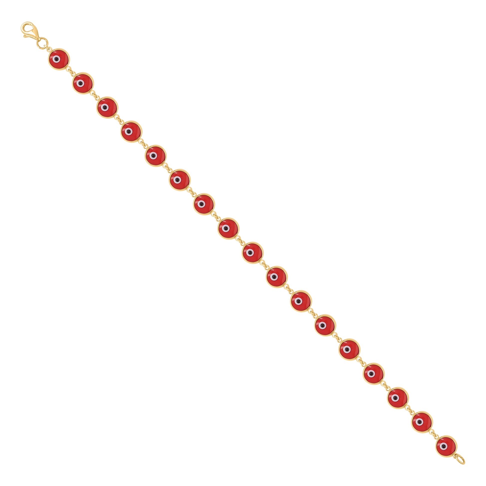 10kt Yellow Gold Womens Red Black Enamel Evil Eye Fashion Link Bracelet Size 8 Inches