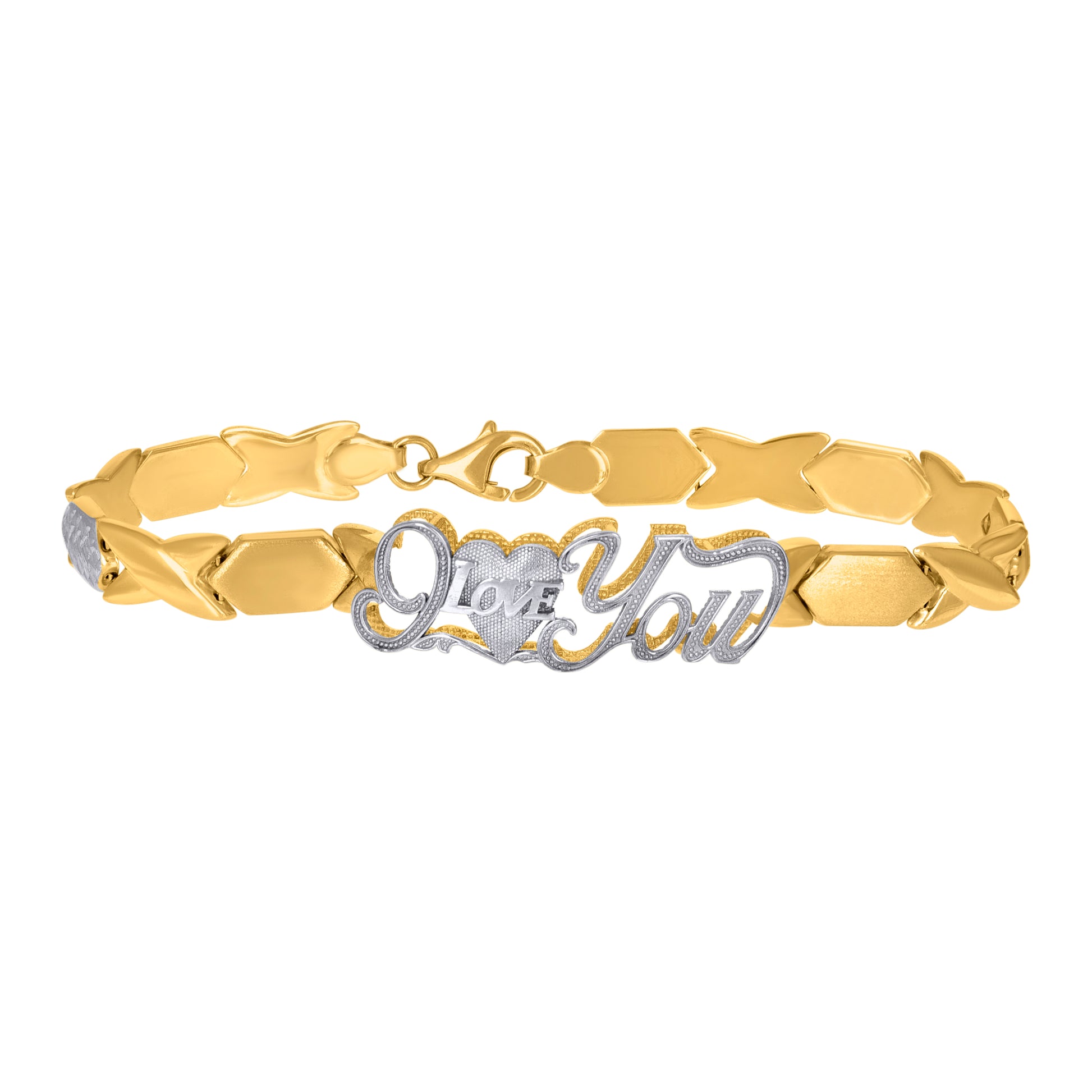 10kt Two-tone Gold Womens Stampato I Love You Heart Bracelet Size 7 Inches