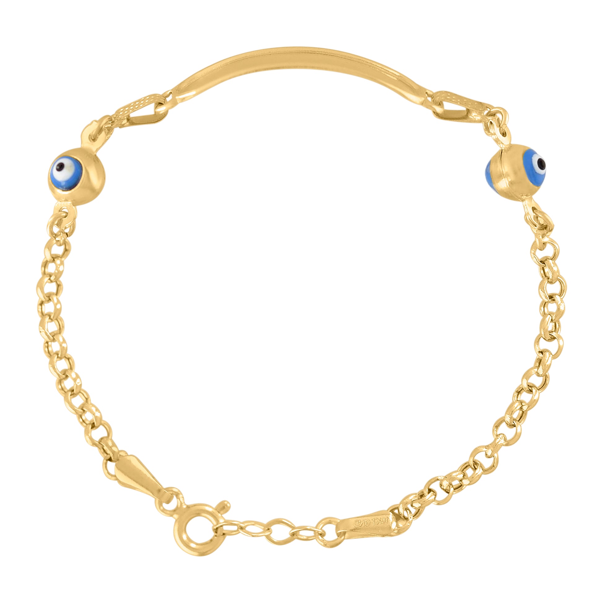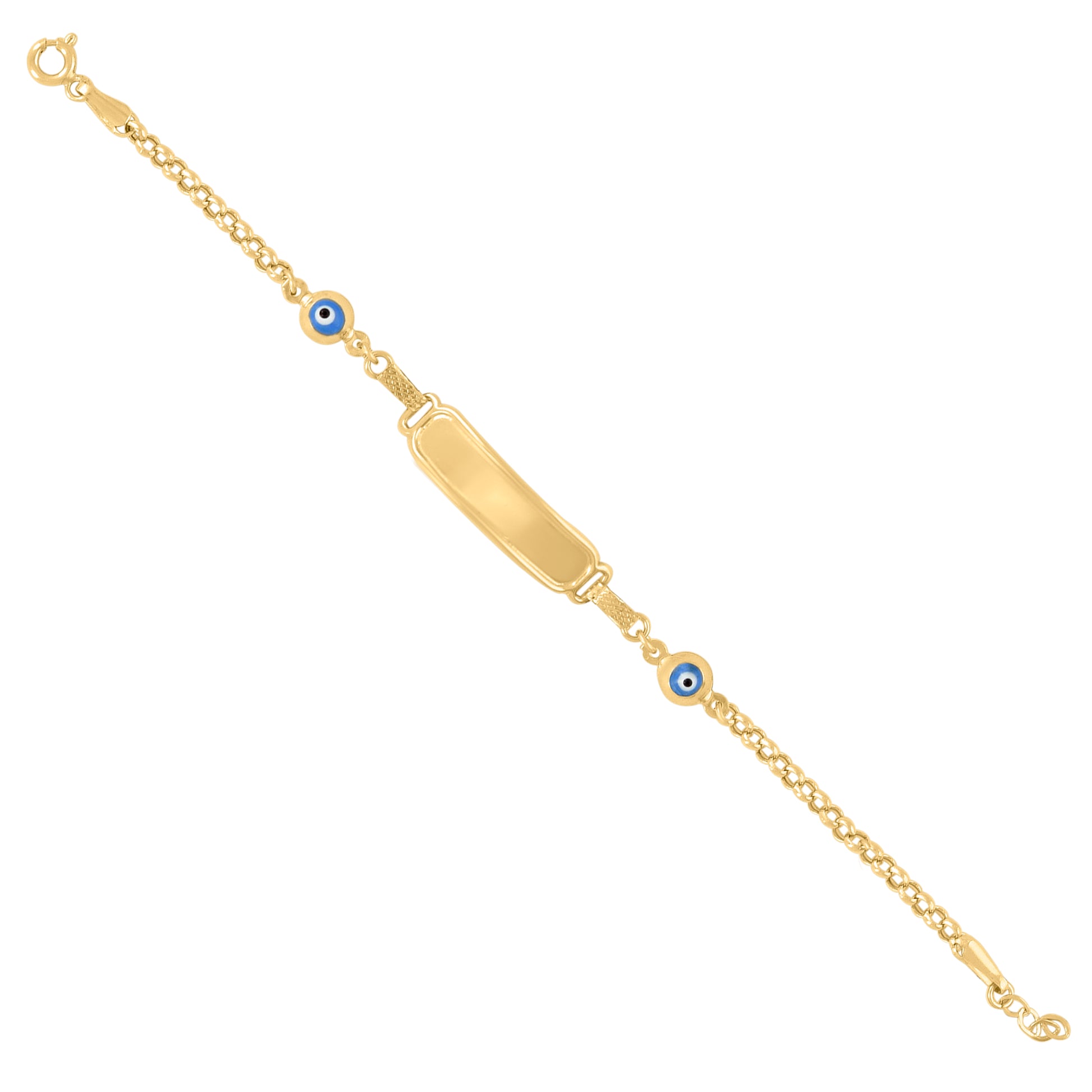 10kt Yellow Gold Womens Enamel Evil Eye Good Luck ID Bracelet Size 6 Inches