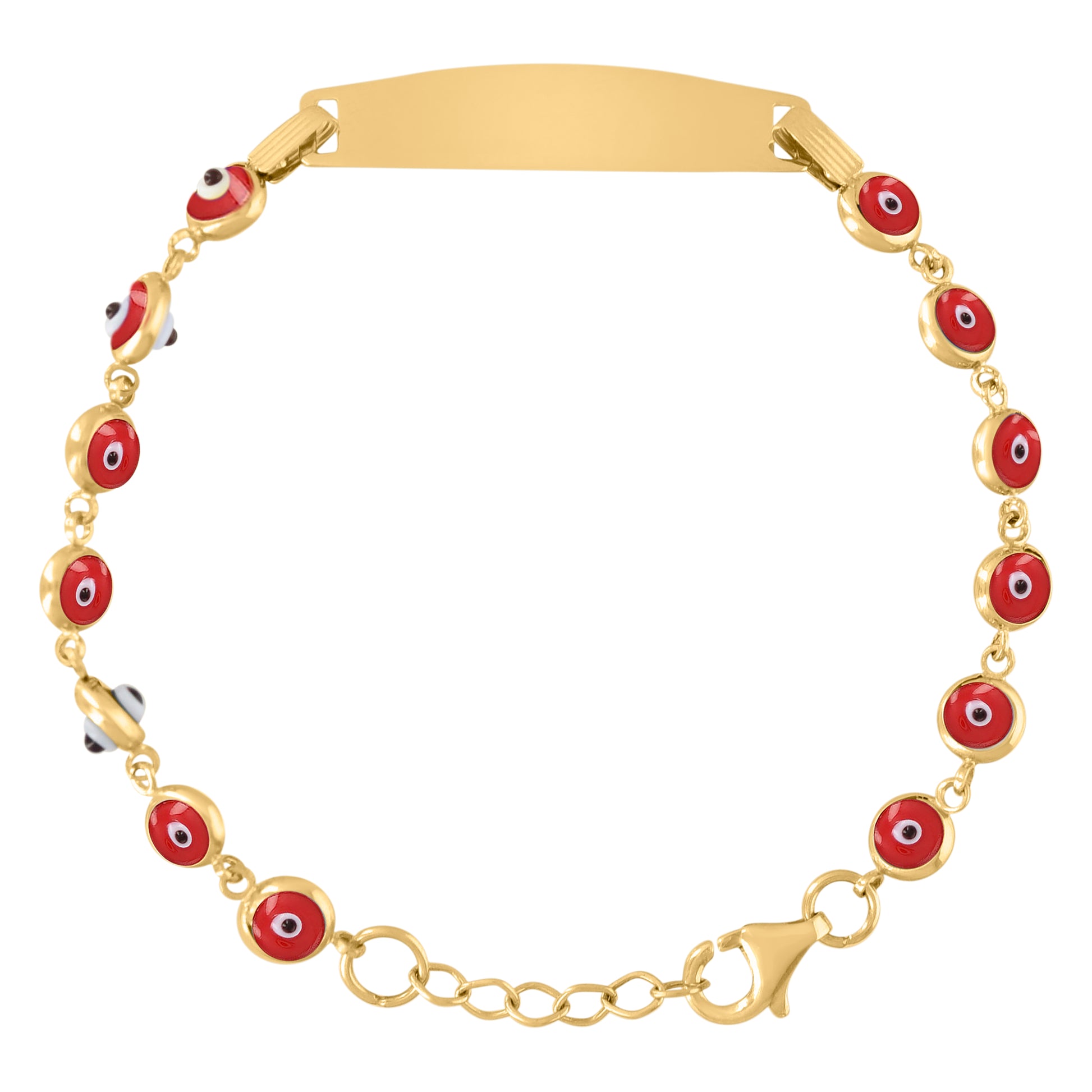 10kt Yellow Gold Womens Enamel Evil Eye Good Luck ID Bracelet Size 6 Inches