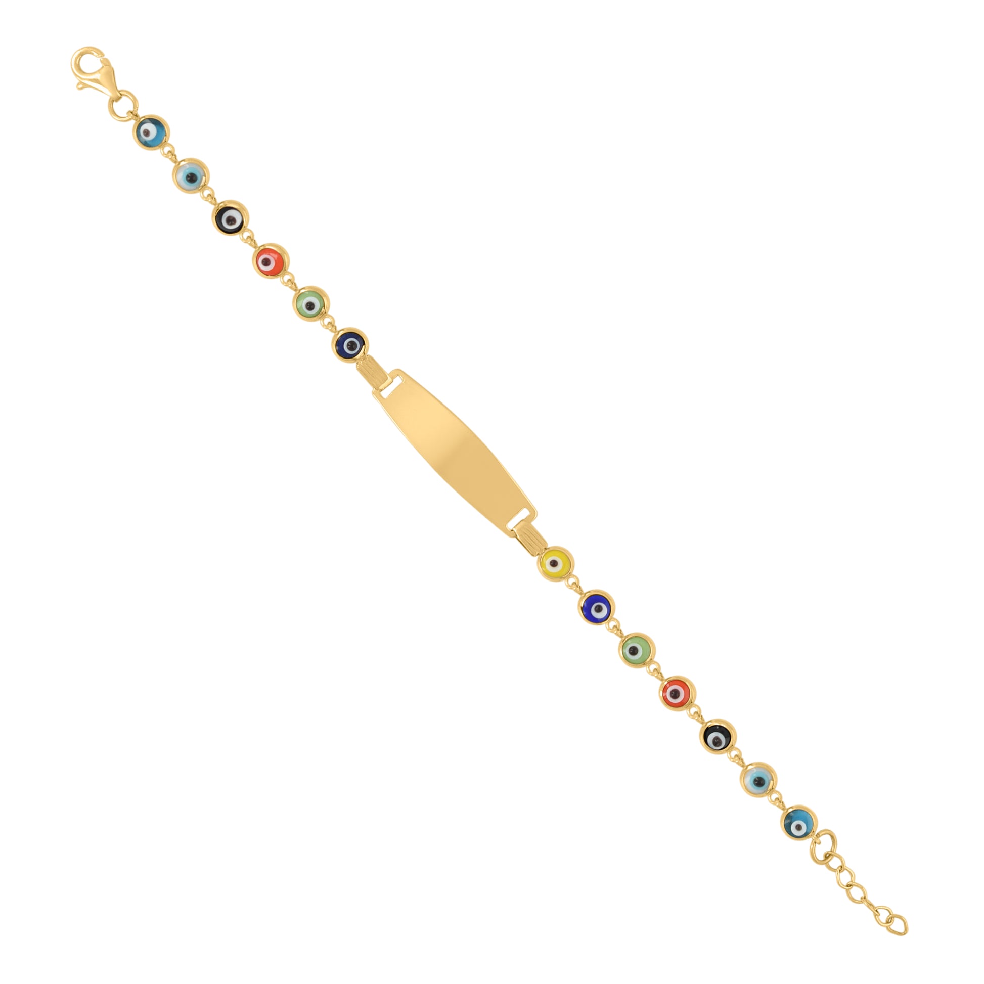 10kt Yellow Gold Womens Enamel Evil Eye Good Luck ID Bracelet Size 6 Inches