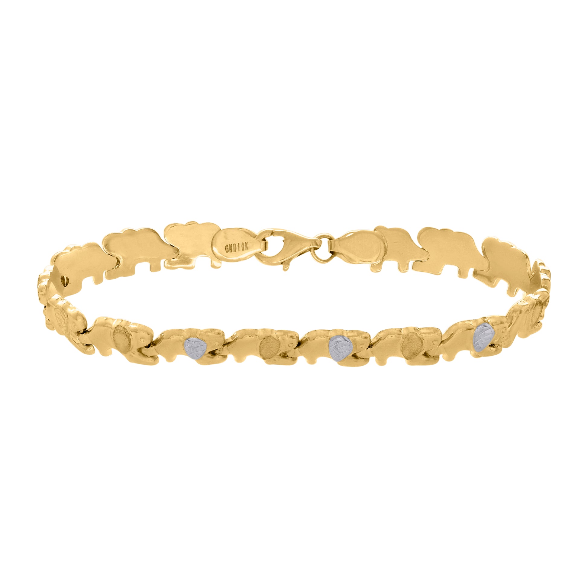 10kt Two-tone Gold Womens Elephant Good Luck Link 7" Bracelet
