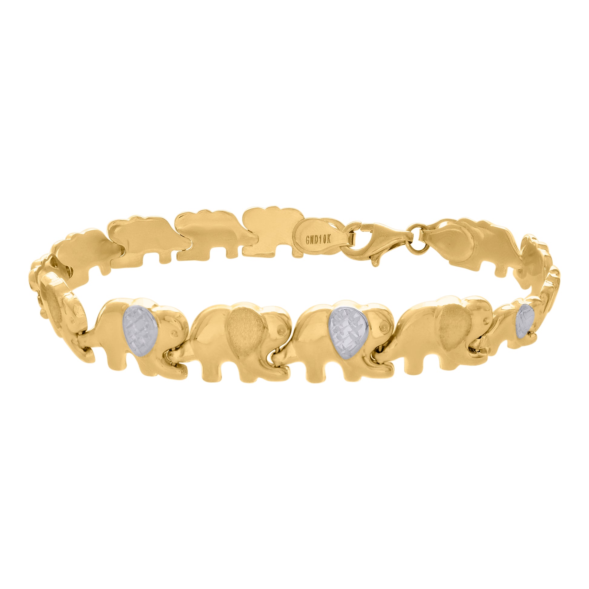 10kt Two-tone Gold Womens Elephant Good Luck Link 7" Bracelet