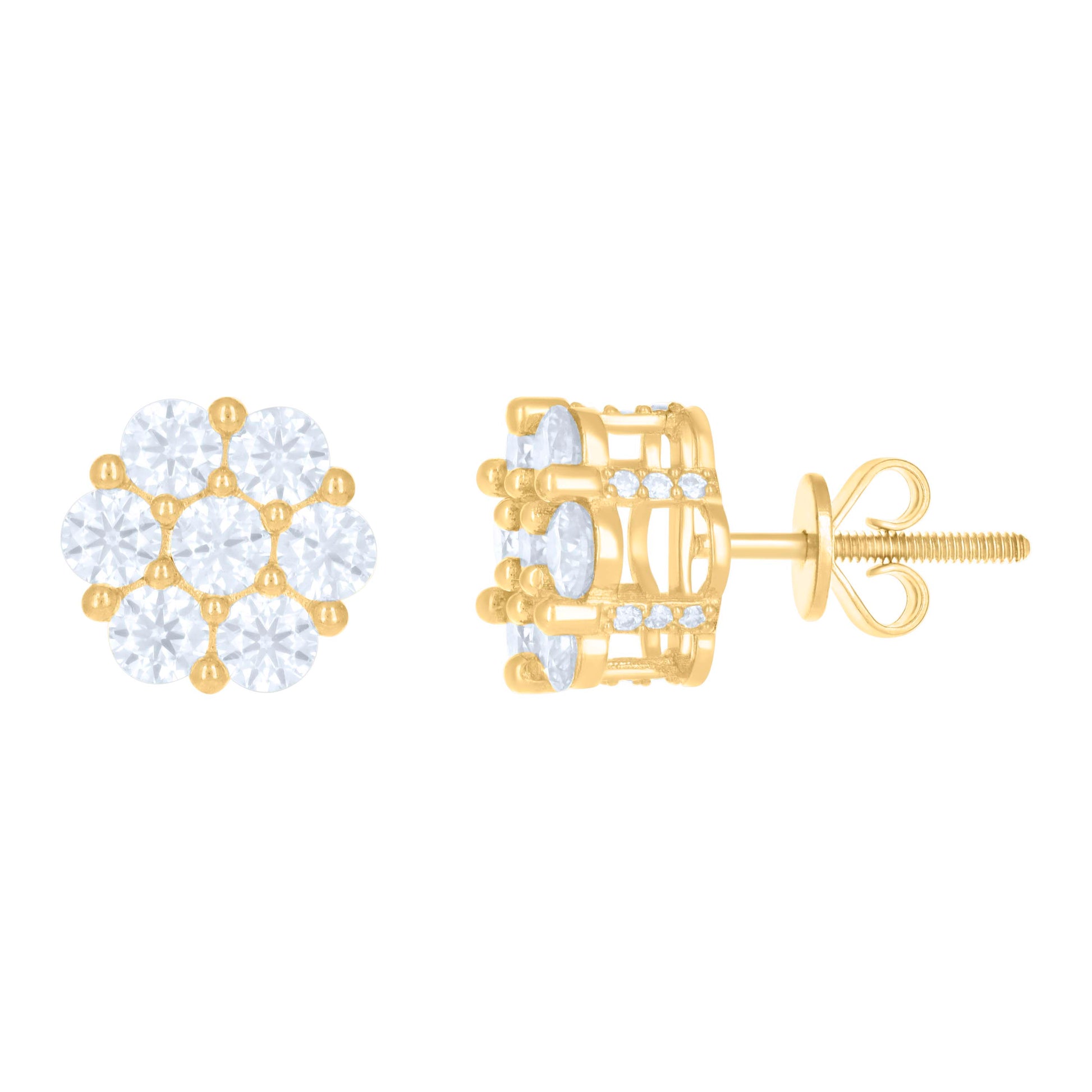10kt Yellow Gold Womens Moissanite 2.07ct Flower Fashion Stud Earrings