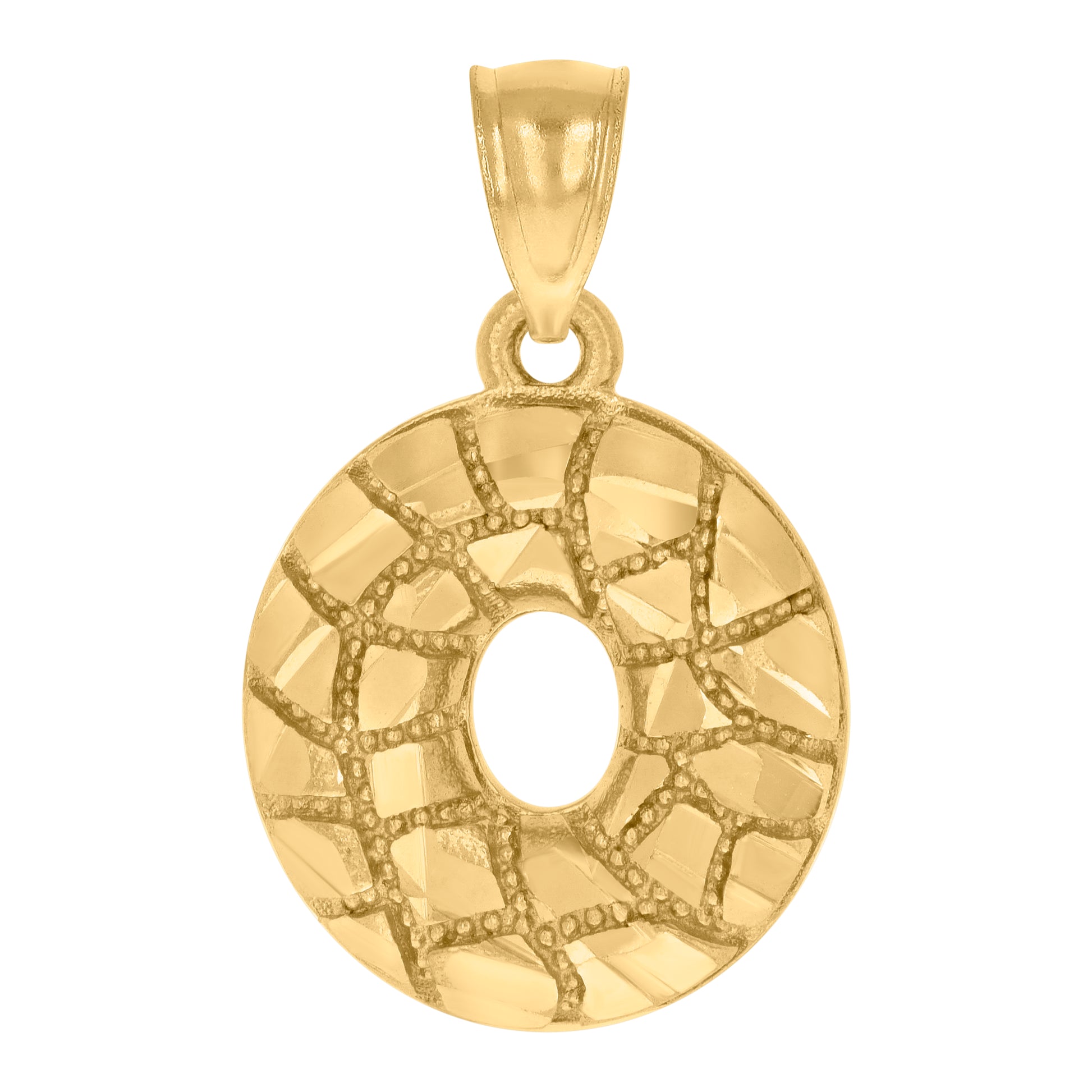 10kt Yellow Gold Unisex Initial Alphabet O Nugget Charm Pendant