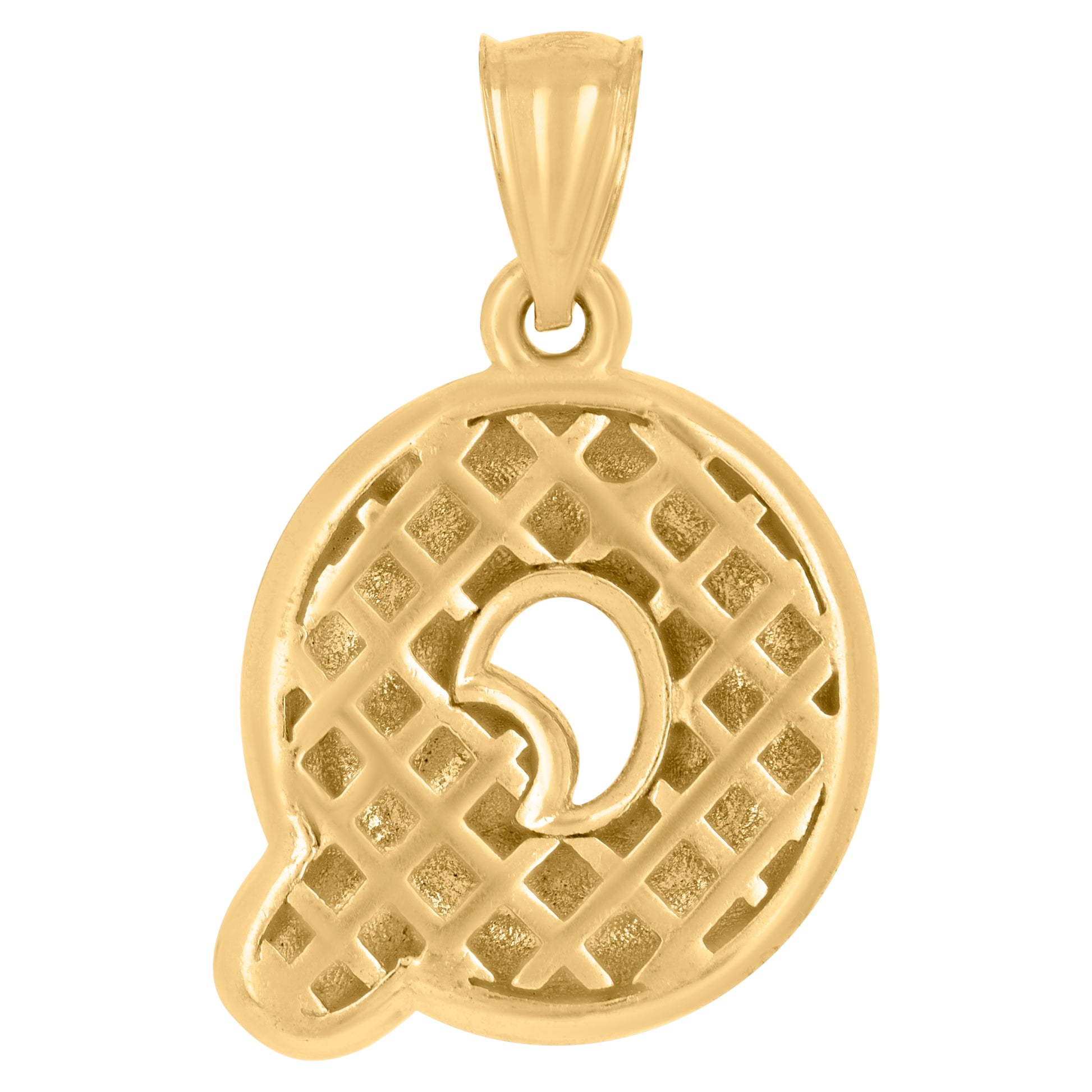 10kt Yellow Gold Unisex Initial Alphabet Q Nugget Charm Pendant