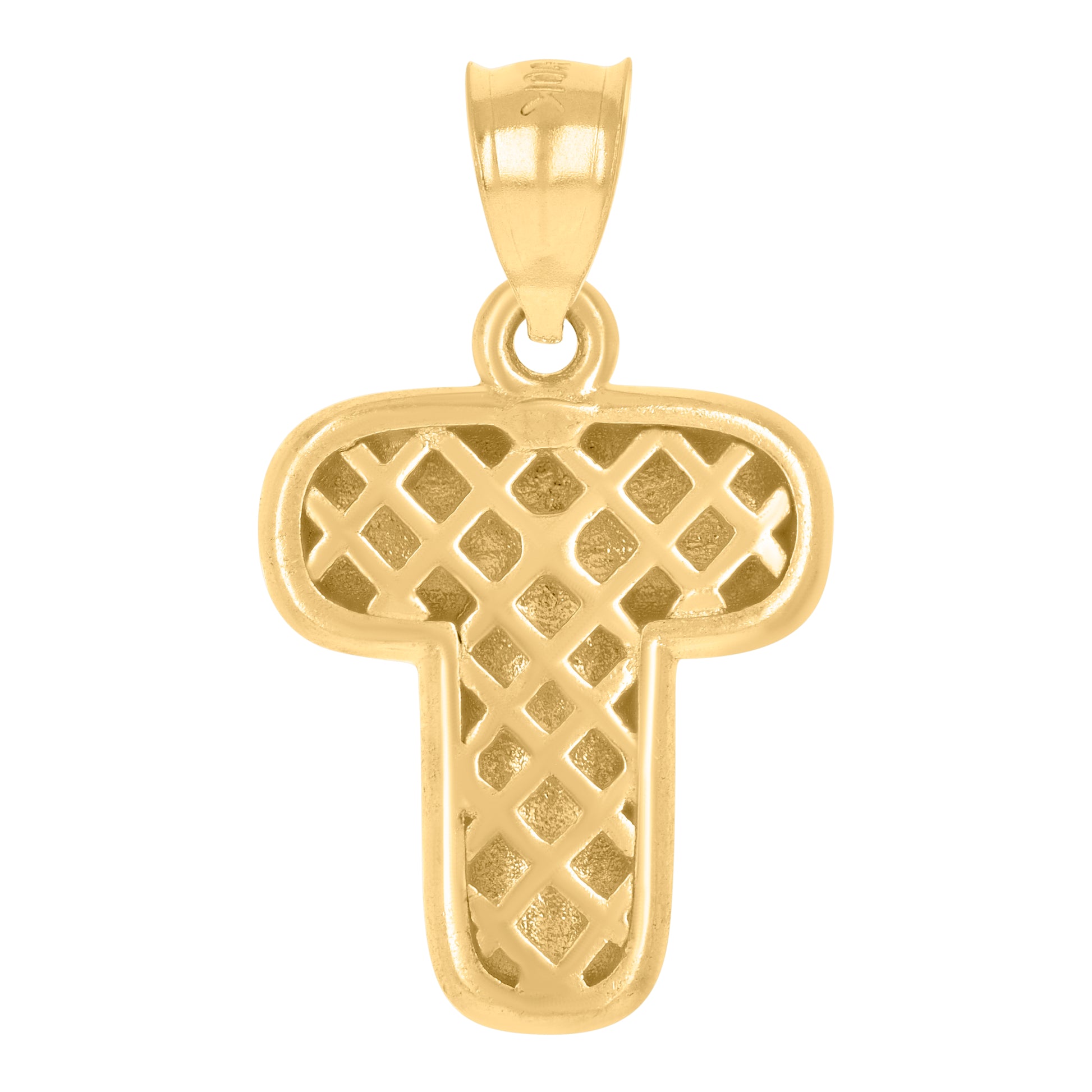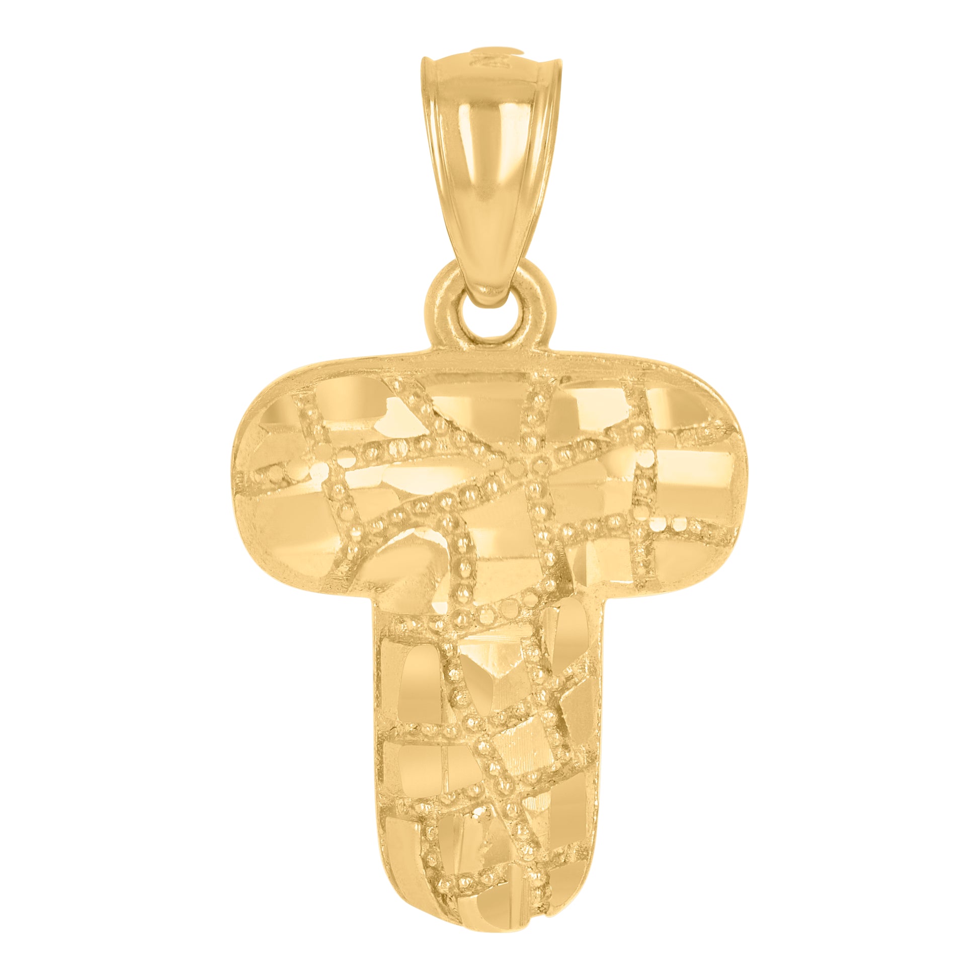 10kt Yellow Gold Unisex Initial Alphabet T Nugget Charm Pendant