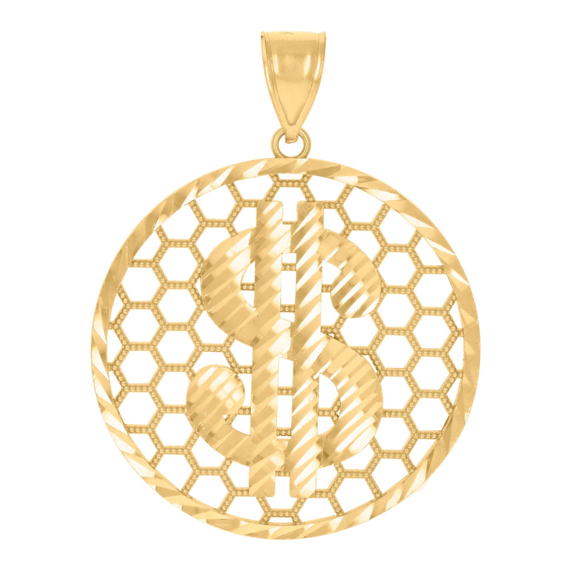 10kt Yellow Gold Mens Dollar Sign Currency Charm Pendant