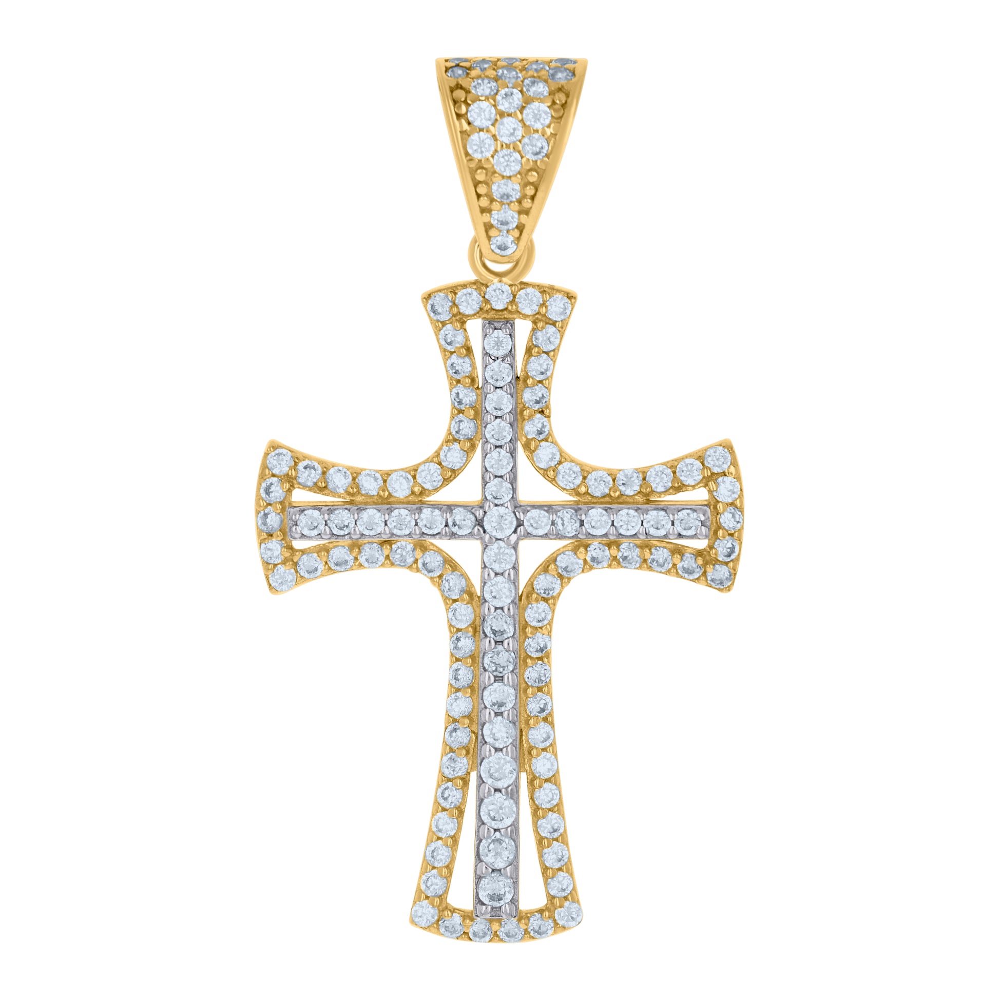 10kt Two-tone Gold Mens Cubic-Zirconia Cross Religious Charm Pendant