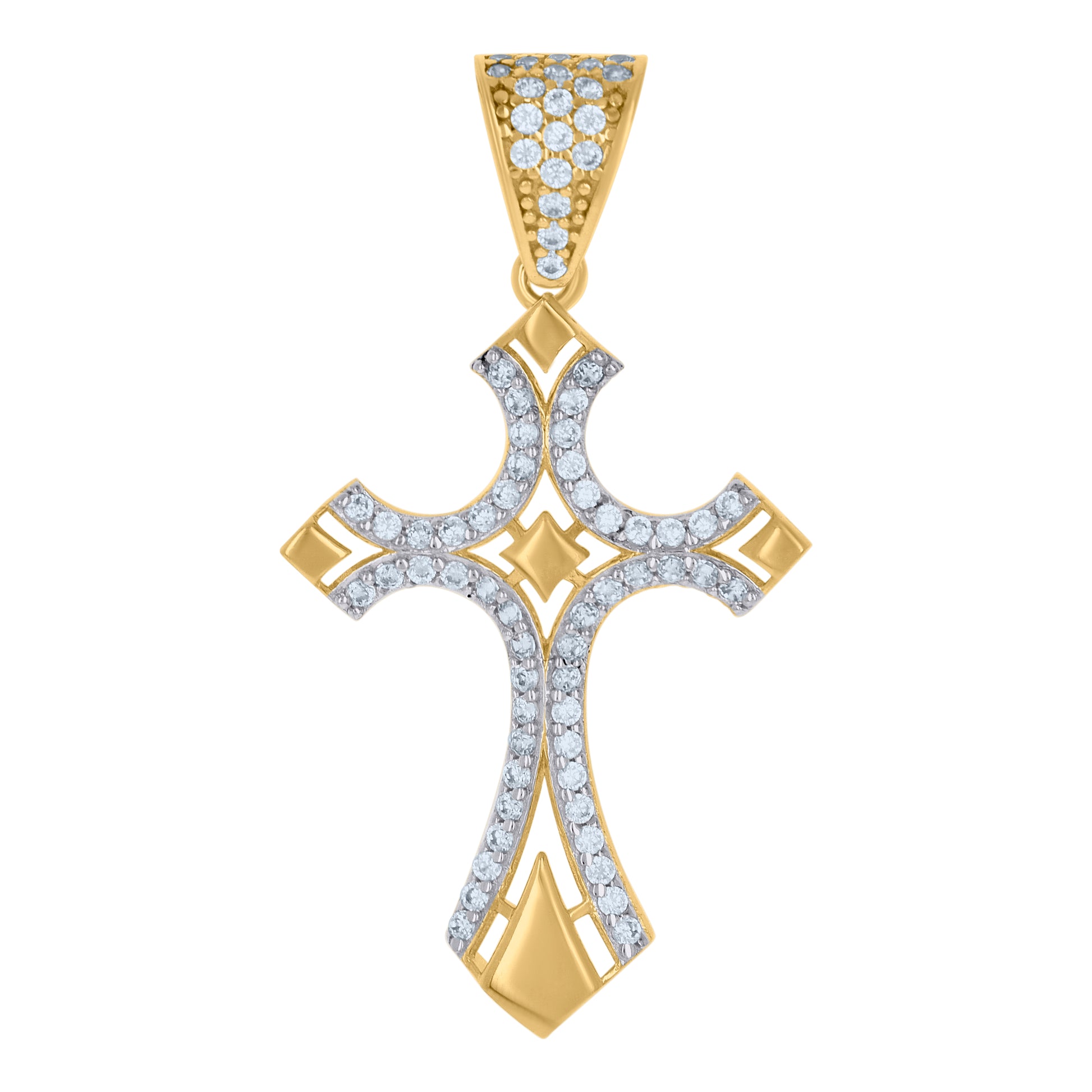 10kt Two-tone Gold Mens Cubic-Zirconia Cross Religious Charm Pendant
