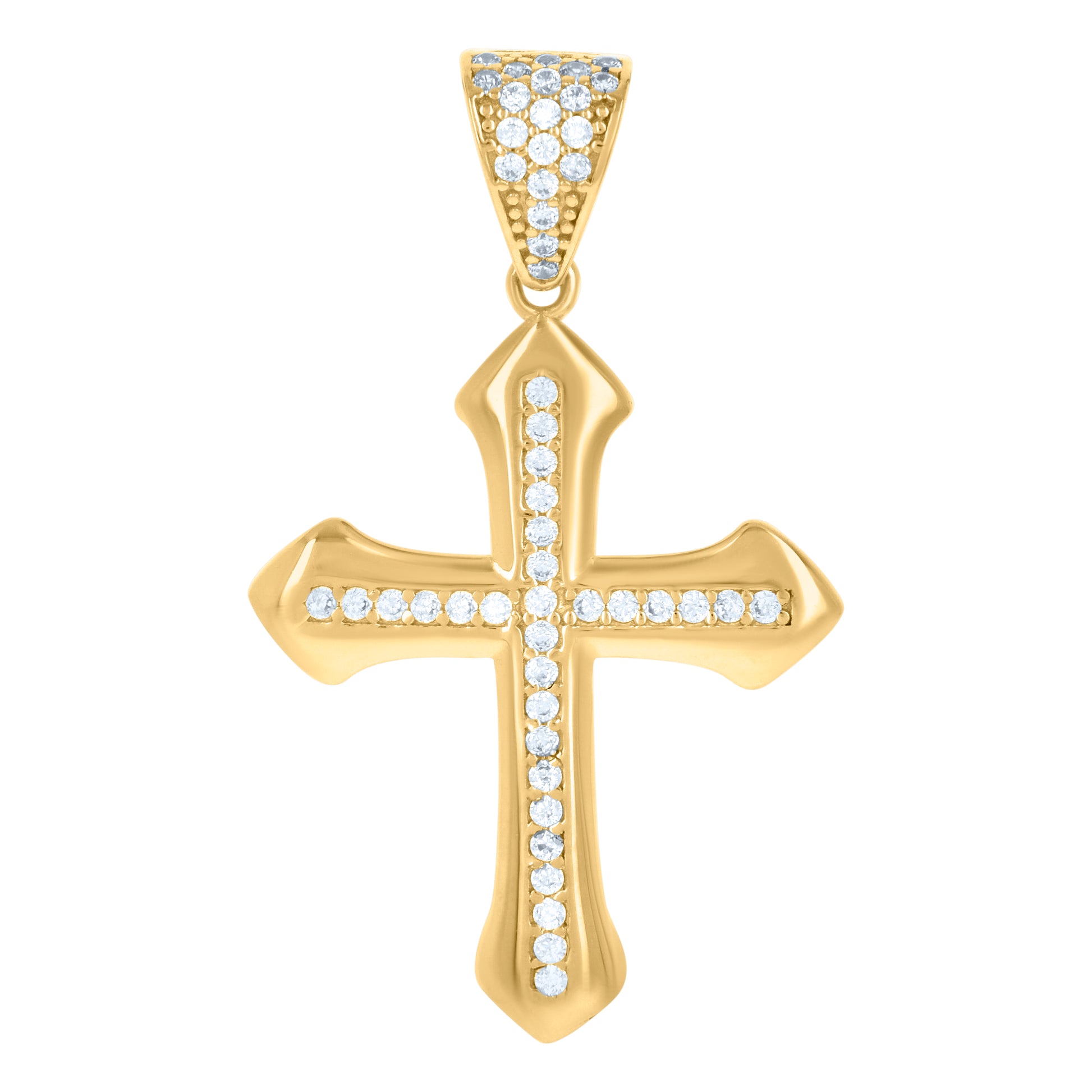 10kt Yellow Gold Mens Cubic-Zirconia Cross Religious Charm Pendant