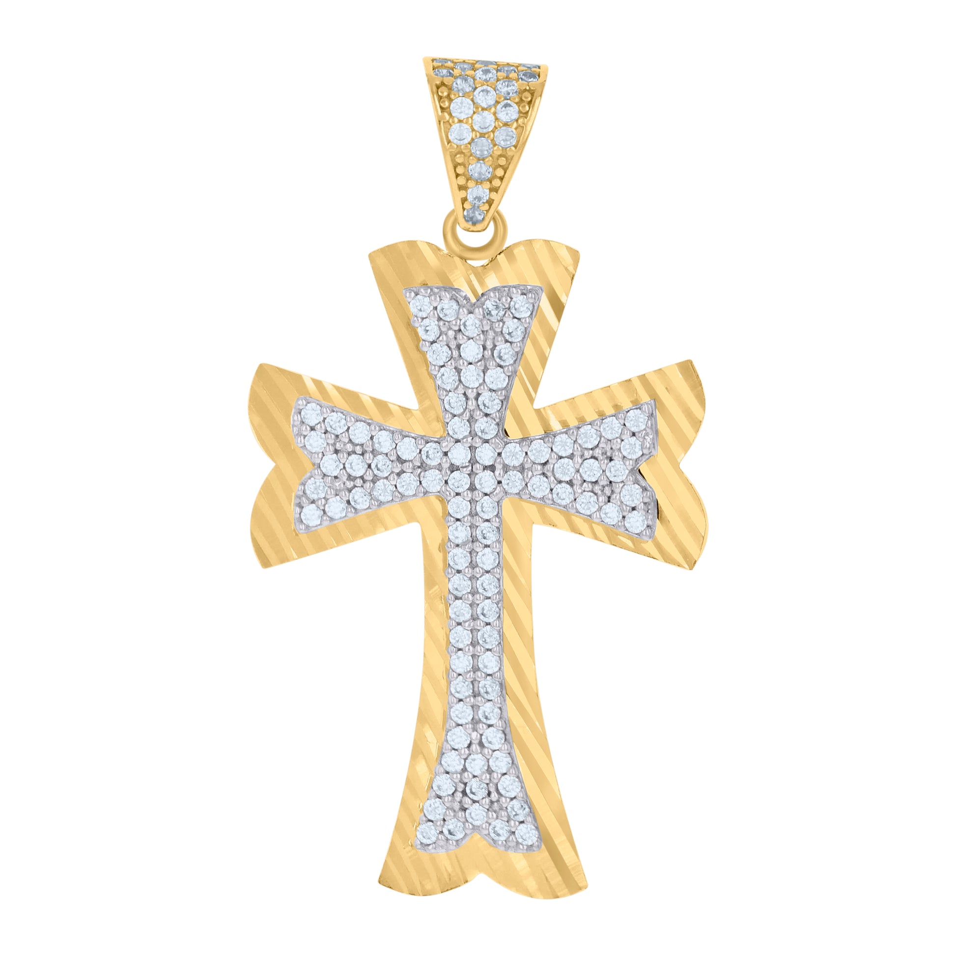 10kt Two-tone Gold Mens Cubic-Zirconia Cross Religious Charm Pendant