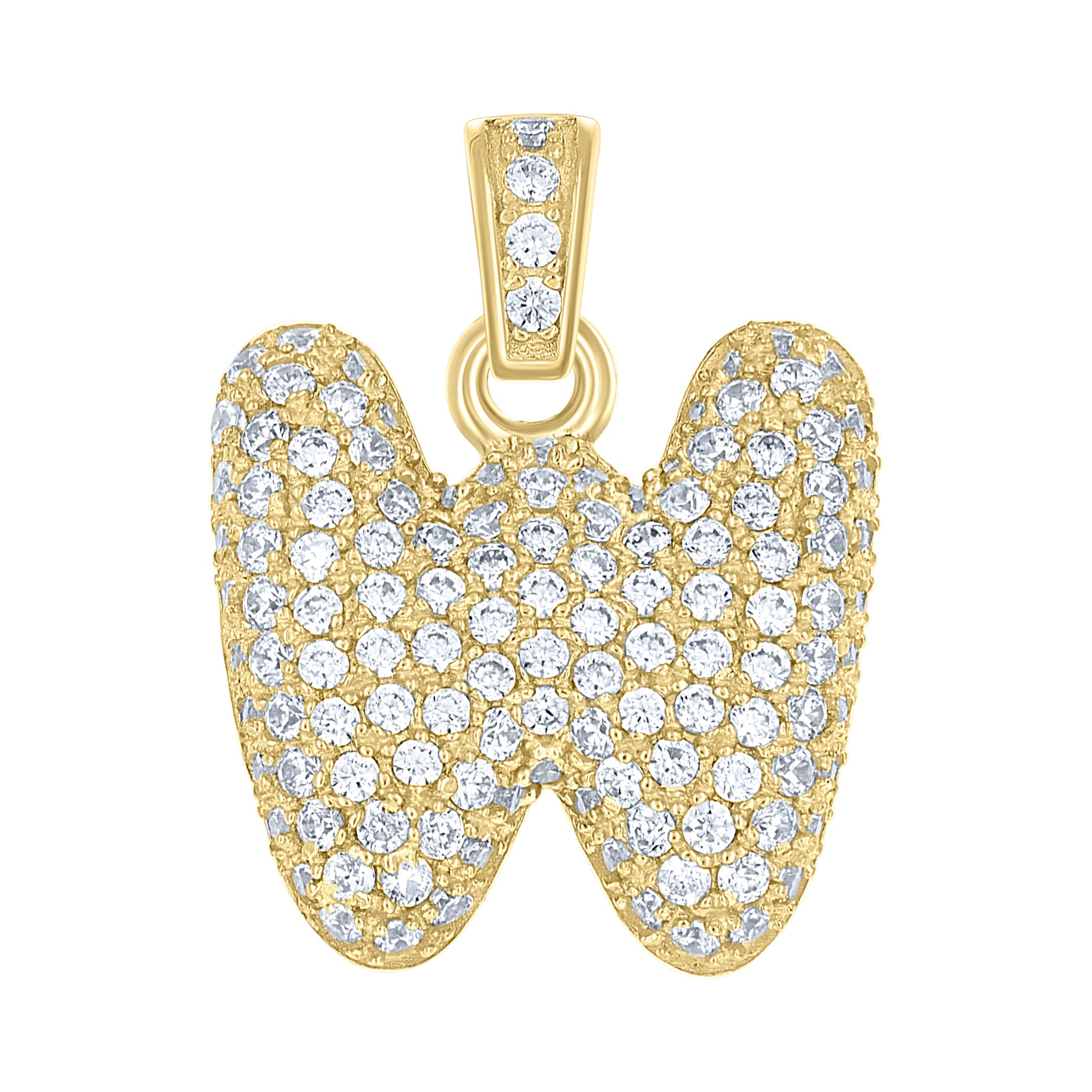 10kt Yellow Gold Unisex Cubic-Zirconia Initial Alphabet W Charm Pendant