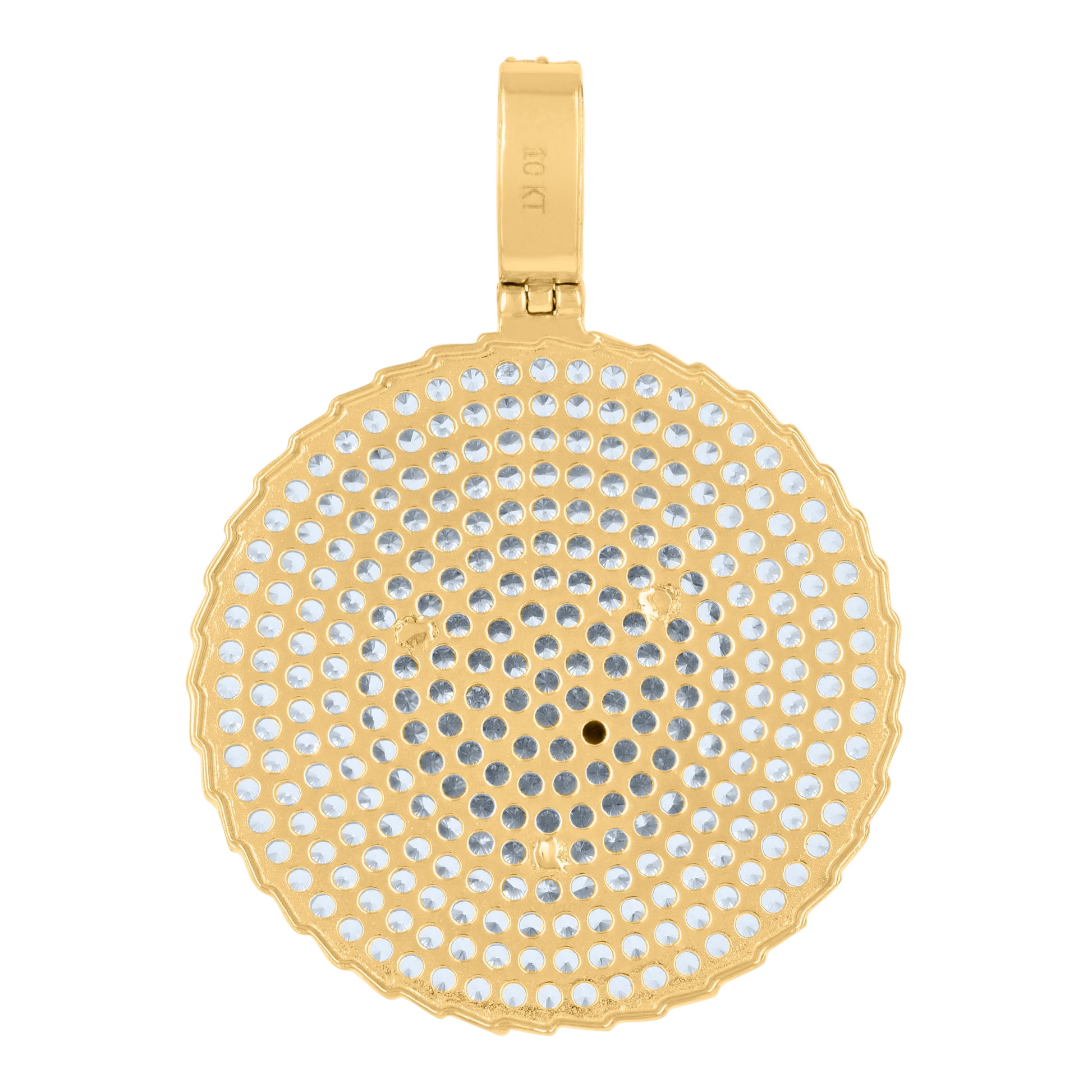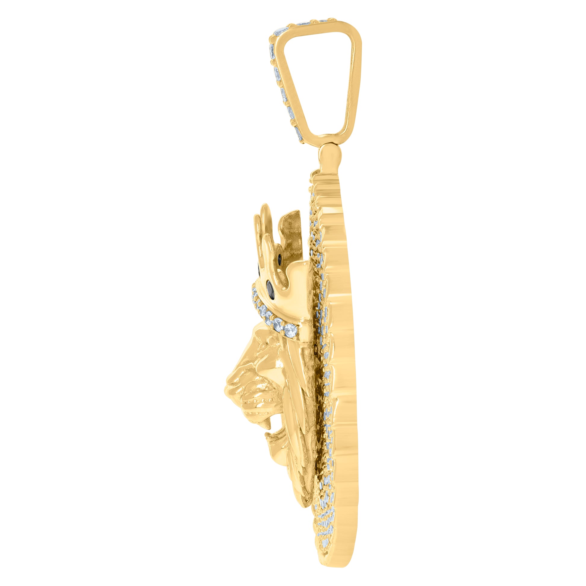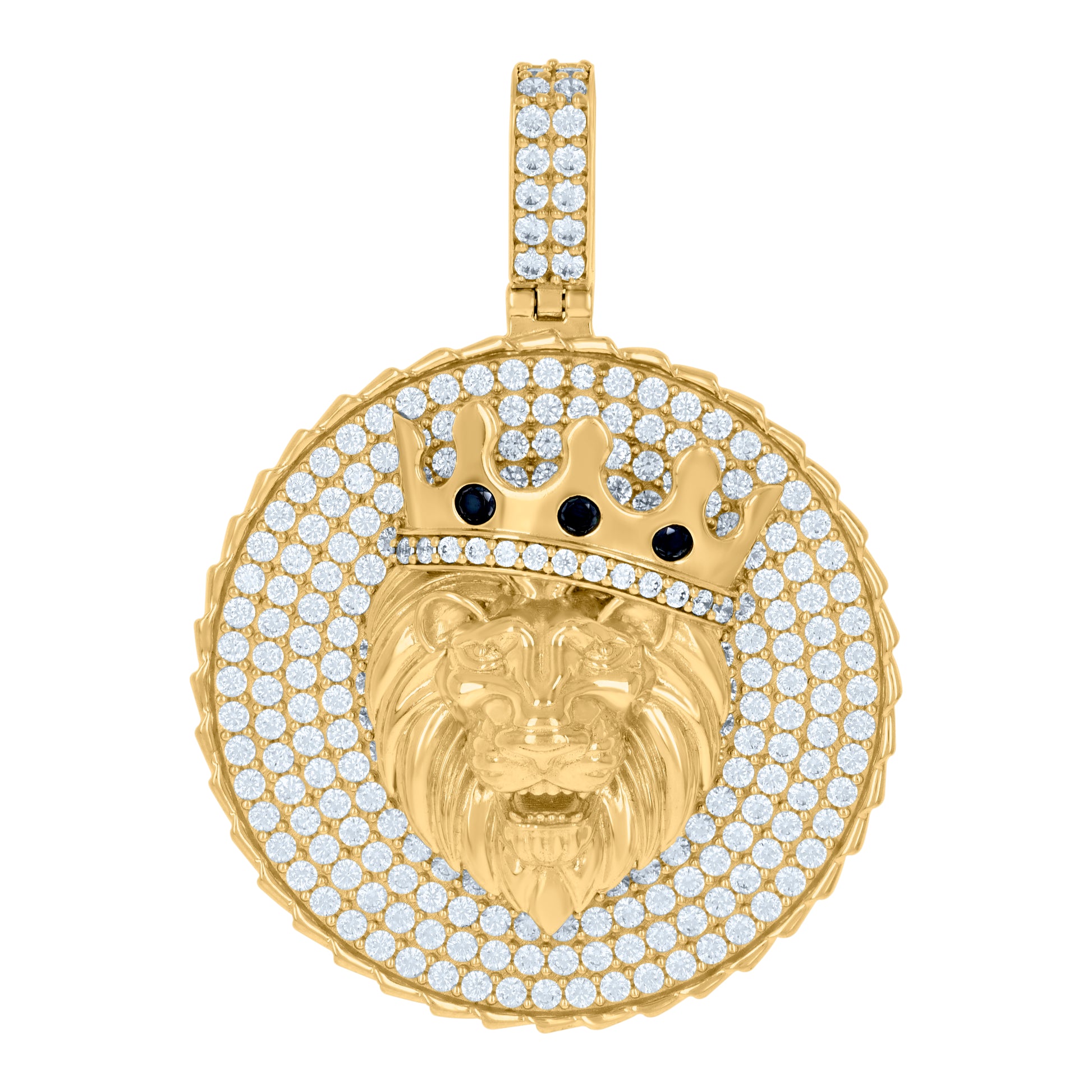 10kt Yellow Gold Mens Black White Cubic-Zirconia Crown Leo/ Lion Head Zodiac Sign/Wildlife Charm Pendant