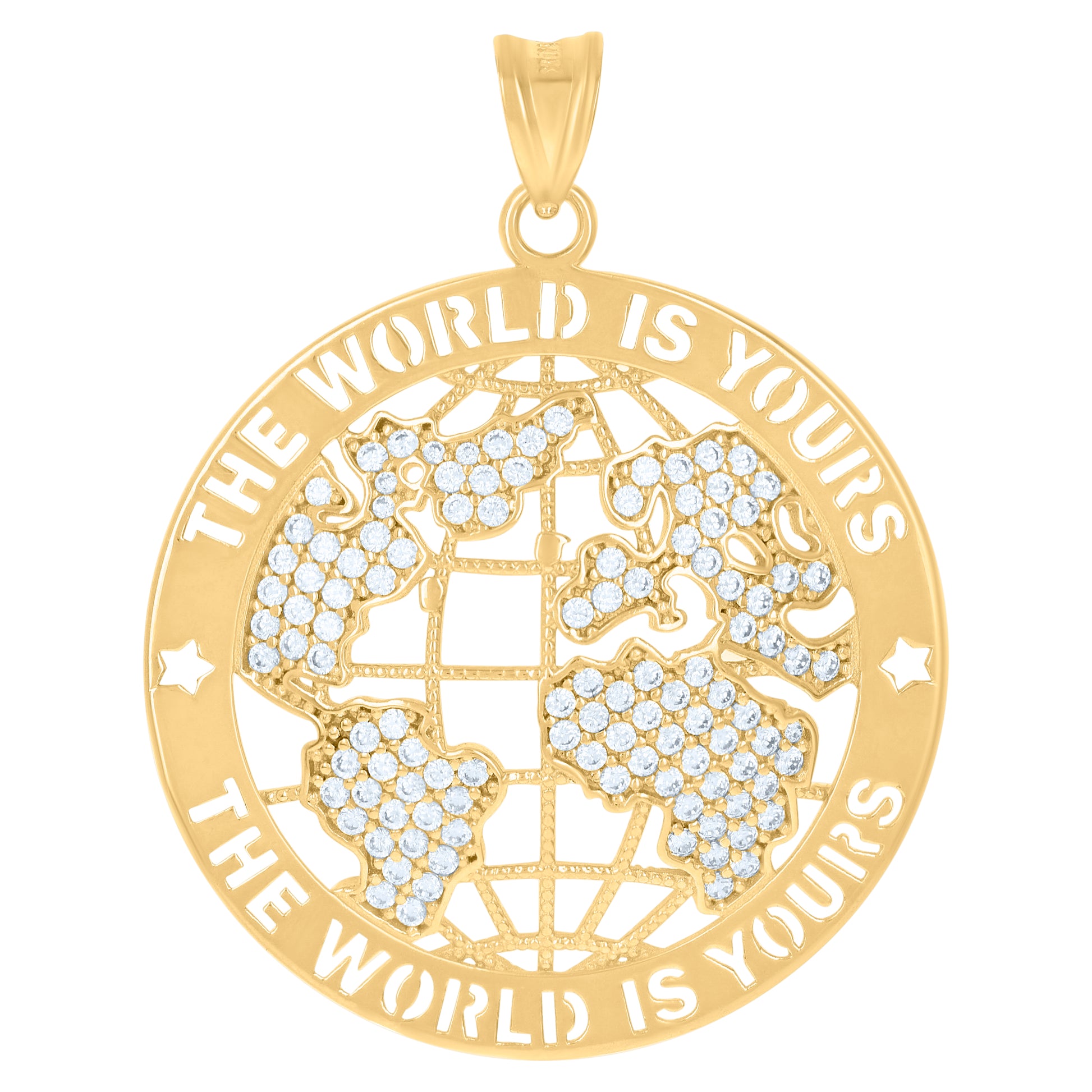 10kt Yellow Gold Mens Cubic-Zirconia The World Is Yours World Map Globe Charm Pendant