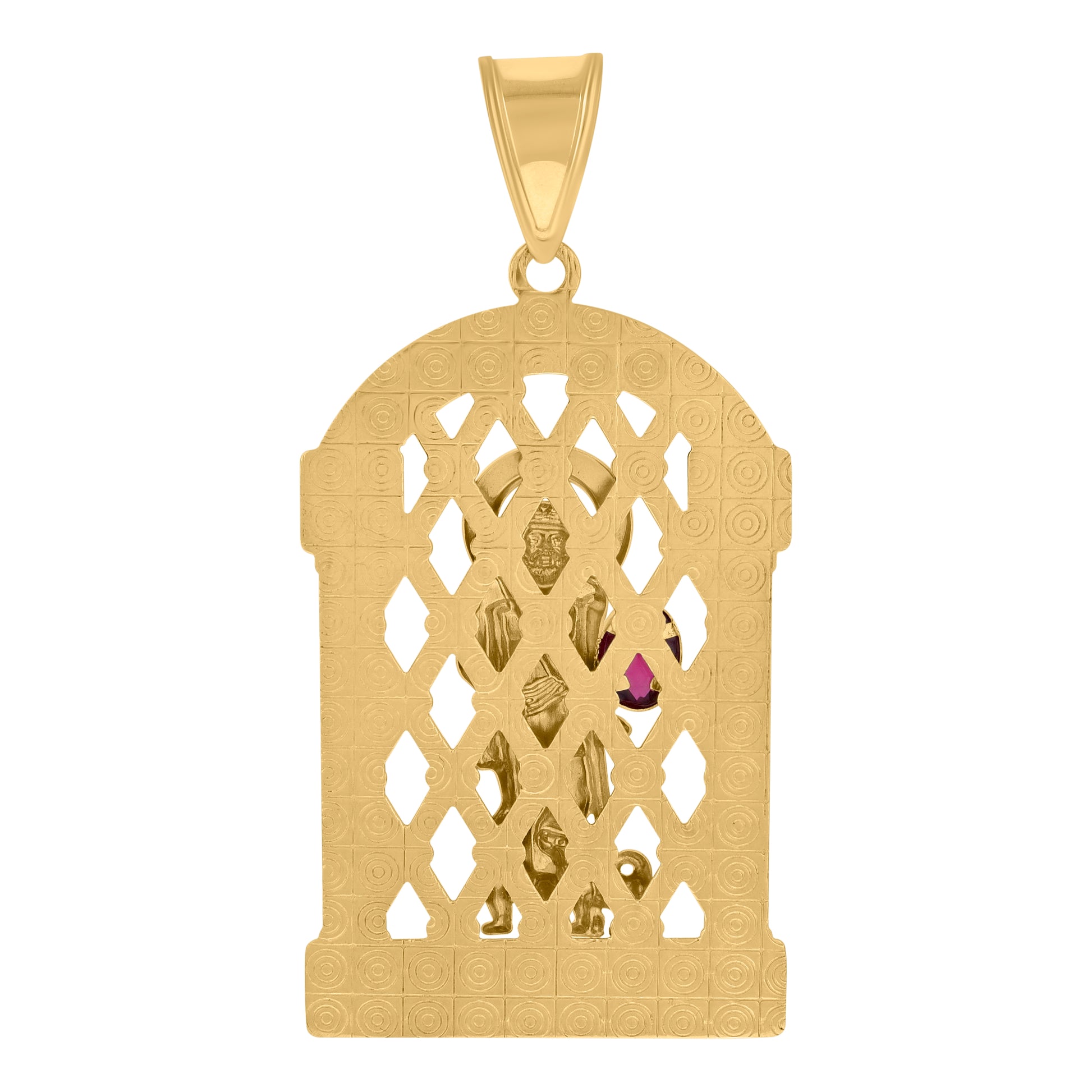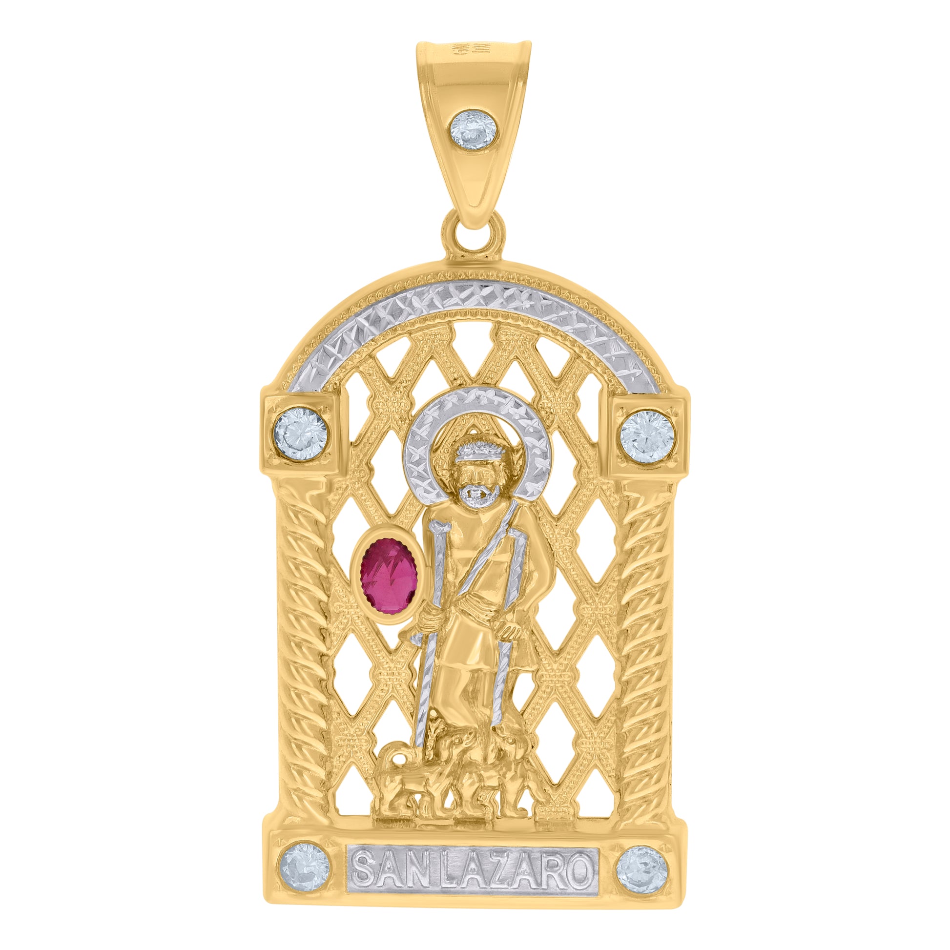10kt Two-tone Gold Mens Red White Oval Round Cubic-Zirconia St. Lazarus Religious Charm Pendant