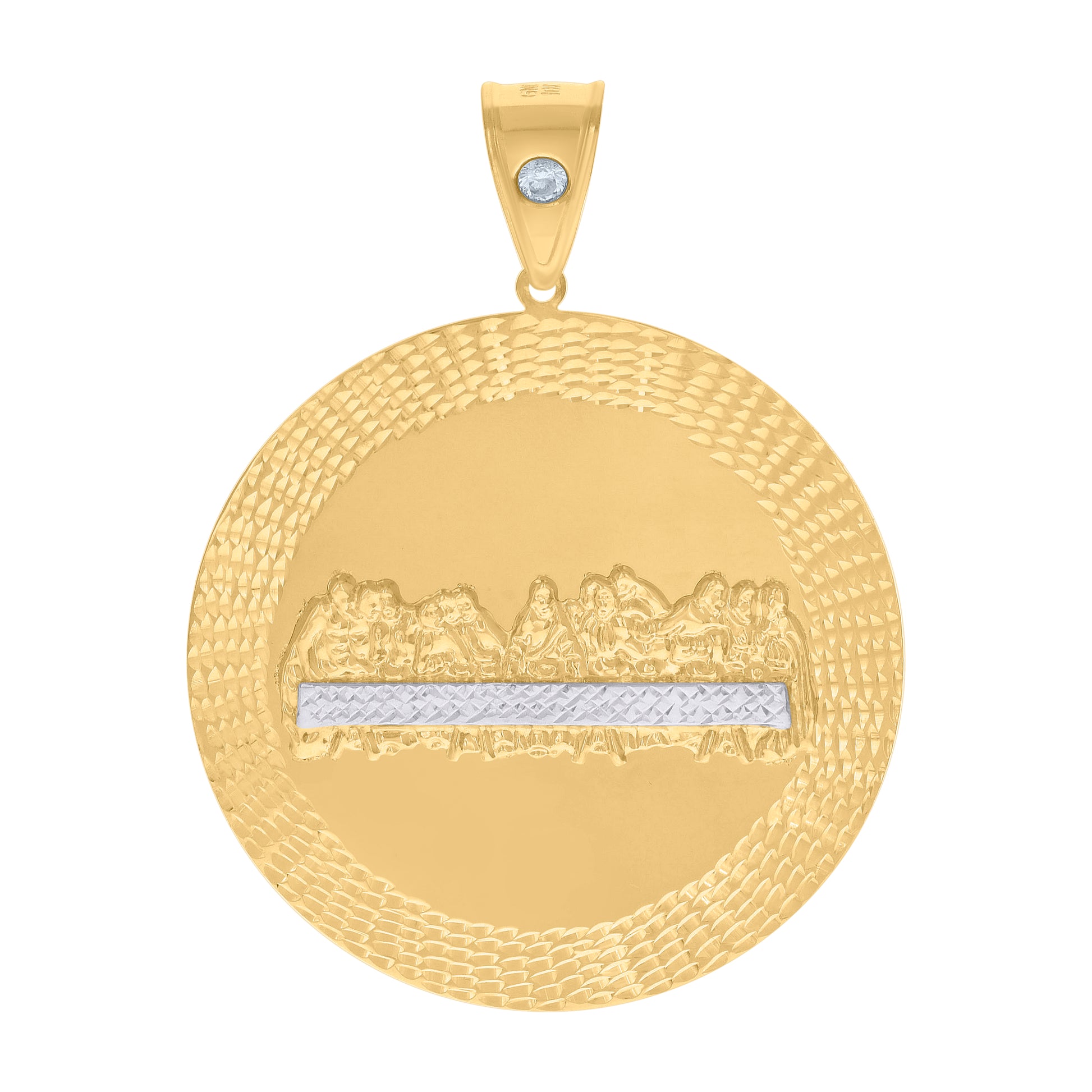 10kt Two-tone Gold Mens Cubic-Zirconia Medallion Last Supper Religious Charm Pendant